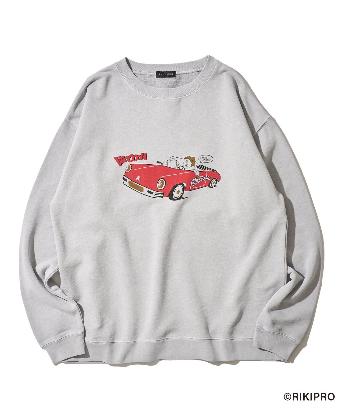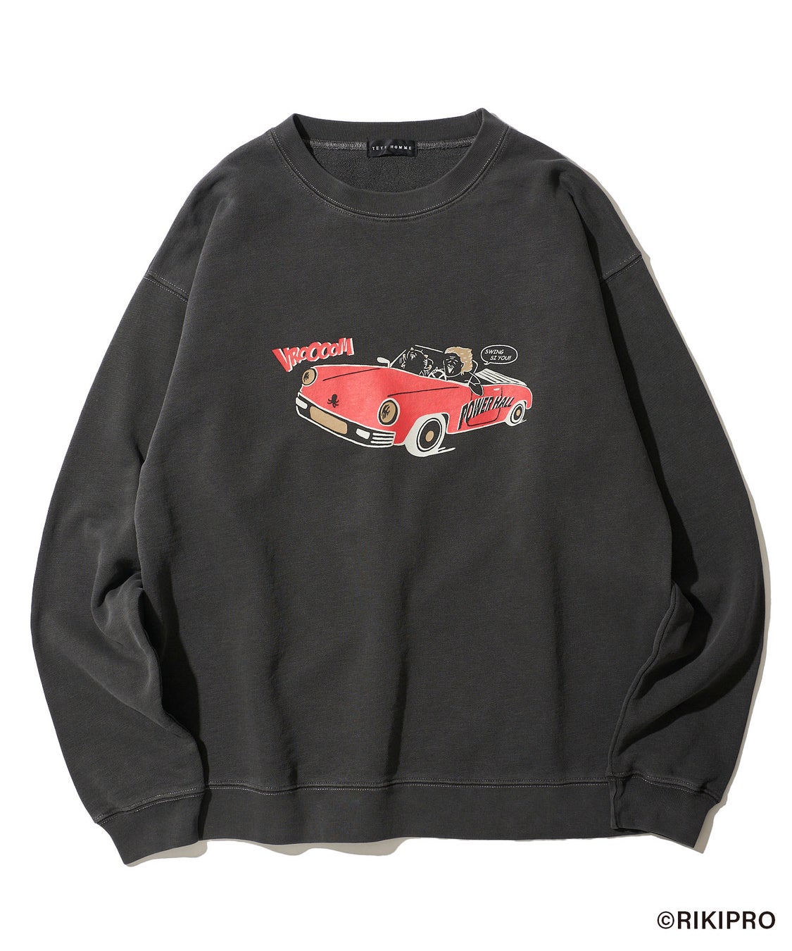クラシックカーが好きな長州力さんがドライブしているモチーフプリントトレーナー。インクジェットプリントでべたつかない仕様。やや大きめのシルエットにして 2 サイズ展開のためレディースからメンズまで幅広く着れるような形となっています。