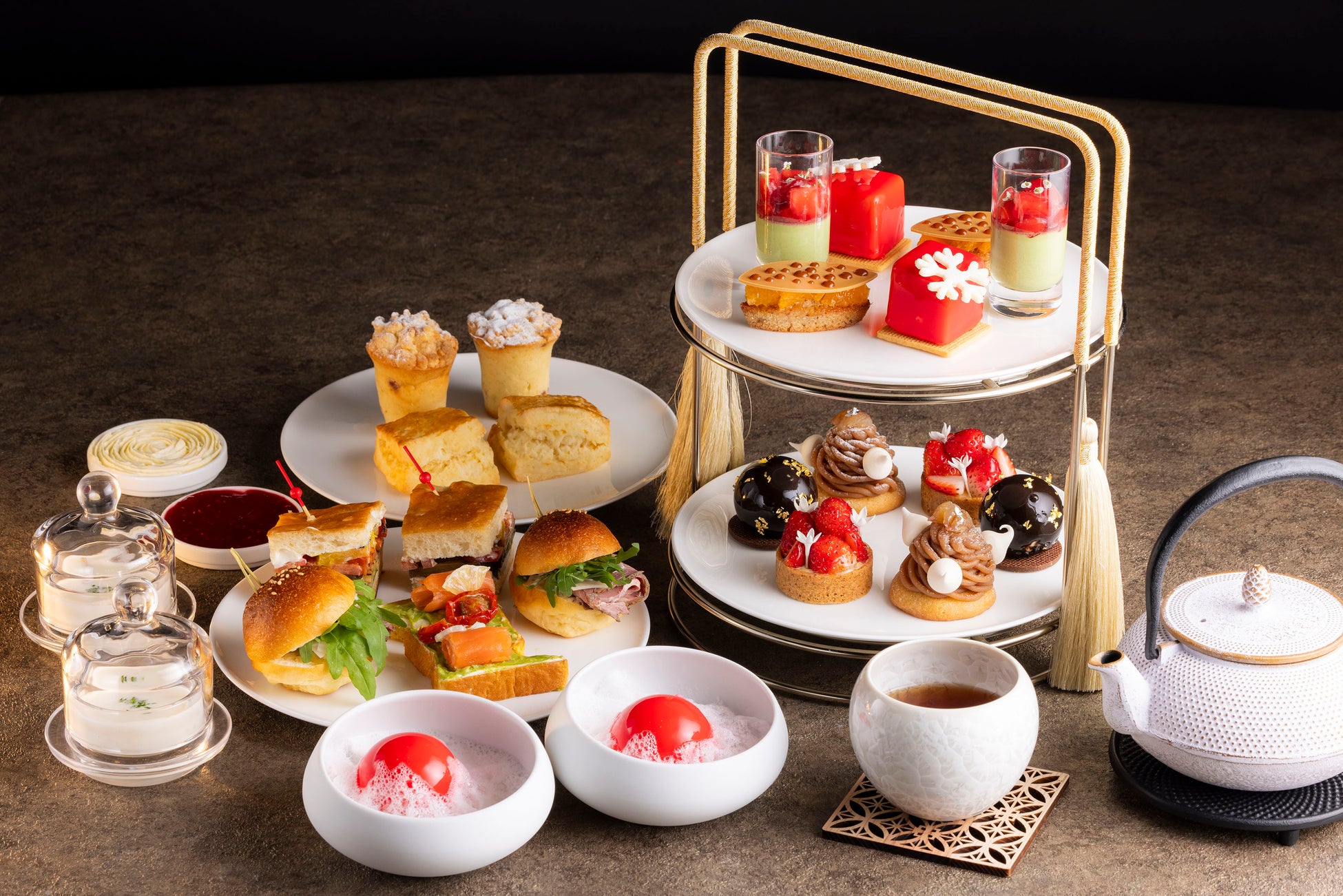 心躍る季節をさらに盛り上げる、フェスティブシーズン限定のアフタヌーンティー。ペストリーシェフが心を込めて作り上げたスイーツ9種とセイボリー4種をお好みのドリンクとご一緒に。ショコラやキャラメルをはじめ、苺やみかん、柿など冬ならではの味わいが詰まったメニューが並びます。京都の老舗「小川珈琲」のブレンドや宇治の日本茶、京都産和紅茶などこだわりのドリンクとご一緒に、心あたたまる語らいのひと時をお過ごしください。