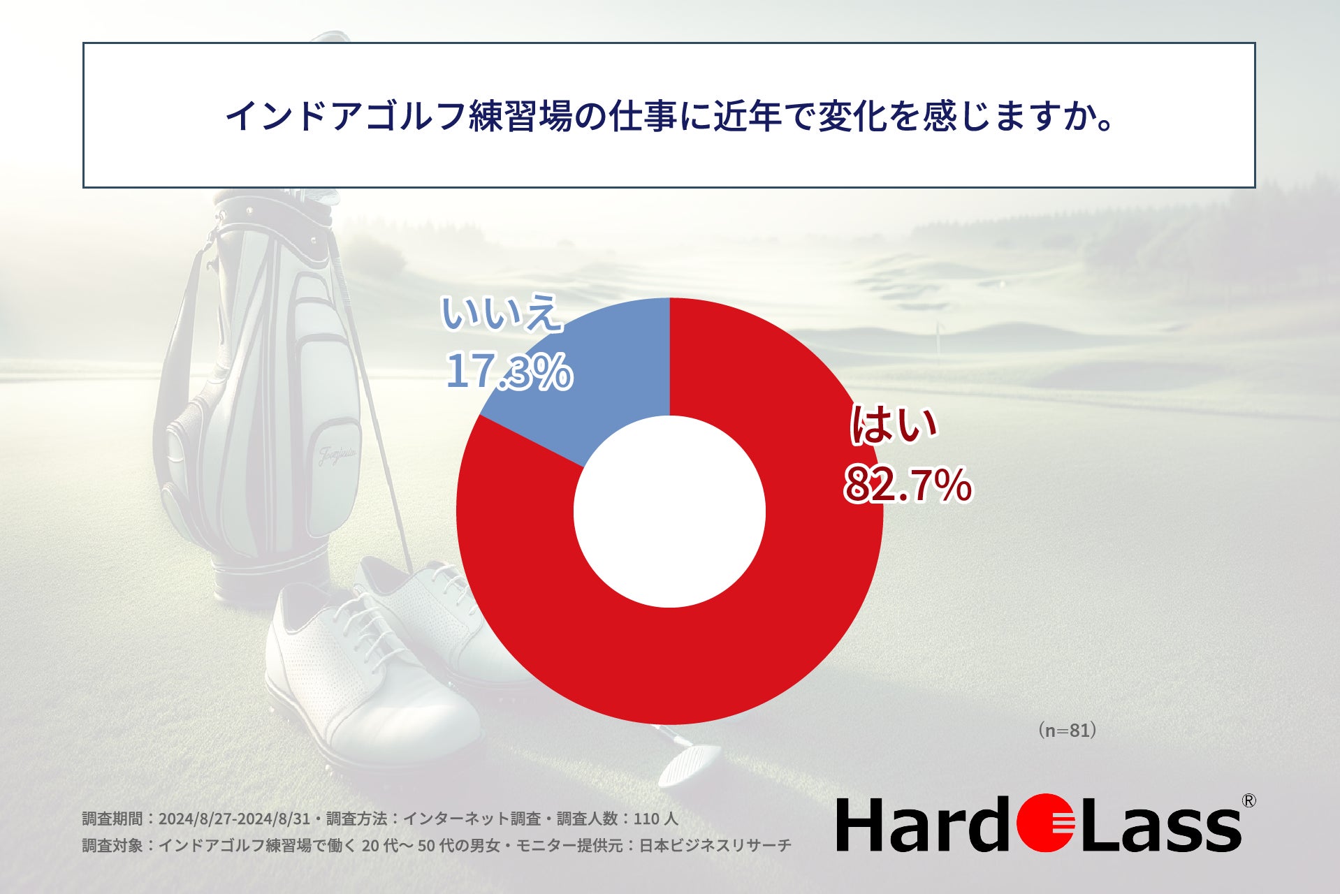 インドアゴルフ練習場で働く方の8割以上が、近年仕事で変化を感じている