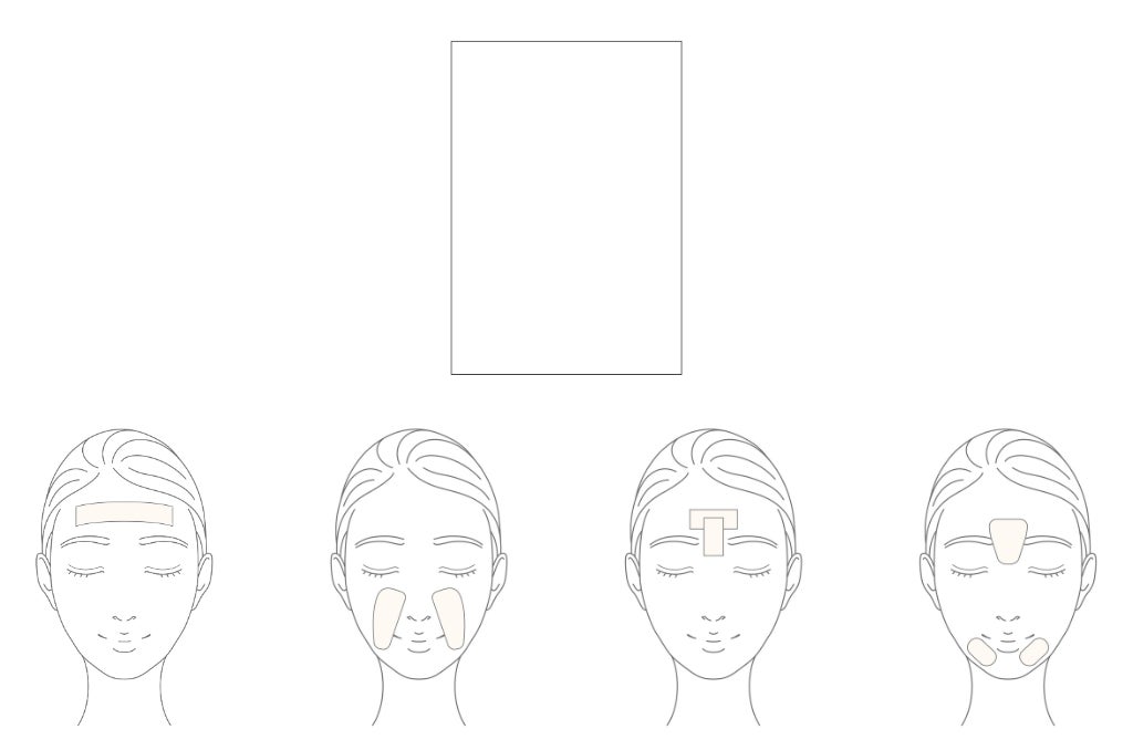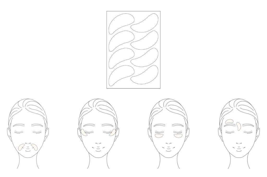 朝夜のお手入れの最後や、顔ヨガの前に,美容液やクリームの後に、シワが気になる肌にピッタリ貼ります。