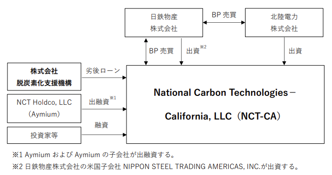 ・今般、Aymiumが中心となって設立するNCT-CAが、米国カリフォルニア州にて、果樹木の古木等を原料に、炭化等の処理を施しBPを製造する工場を新たに建設することを計画しています。製造されたBPは、北陸電力の石炭火力発電所での利用等を用途として販売される予定です。