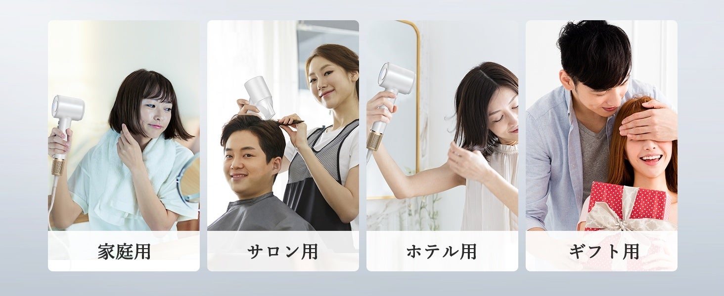 製品:「Bopwavy」マイナスイオンドライヤーは高速モーターが内蔵され、毎分120,000の高速回転を生成、パワフルな風を送る同時に髪に水分を補給します。