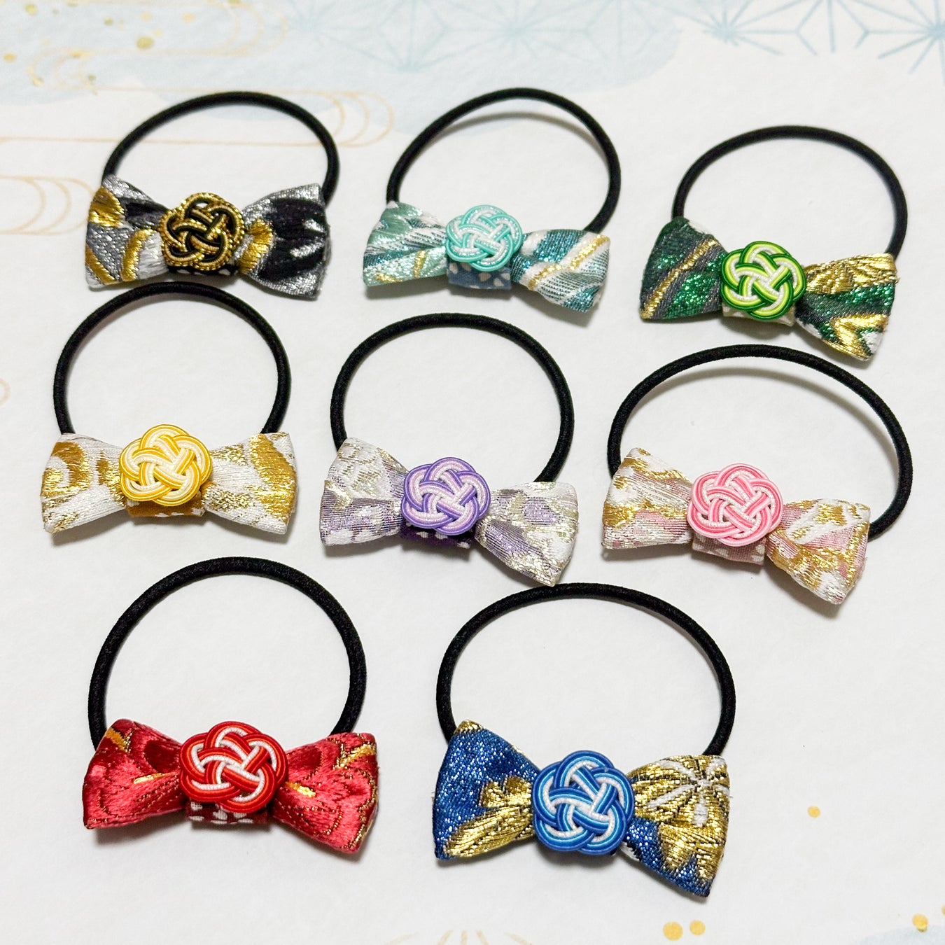 ぬいぐるみに使える西陣織ミニヘアゴムや推し色水引マグネットブローチを販売