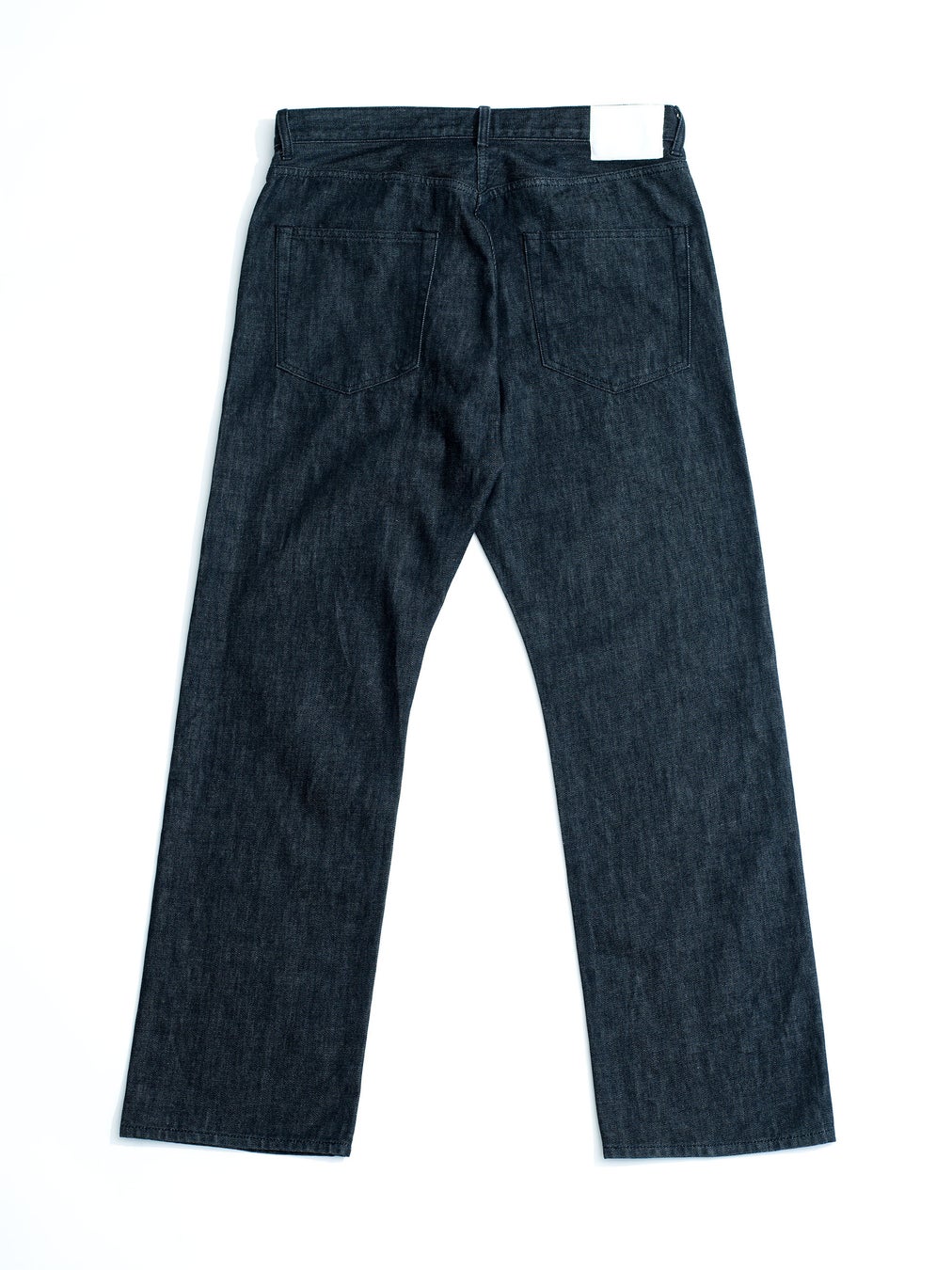 生地はCone Mills社WHITE OAK製の13.0oz BLACK DENIMを使用し、縫製は巻き縫い部分は全てUnion Specialミシンで縫製したクラシカルなデニム。ストレートシルエットのデニムは福岡店限定のアイテムです