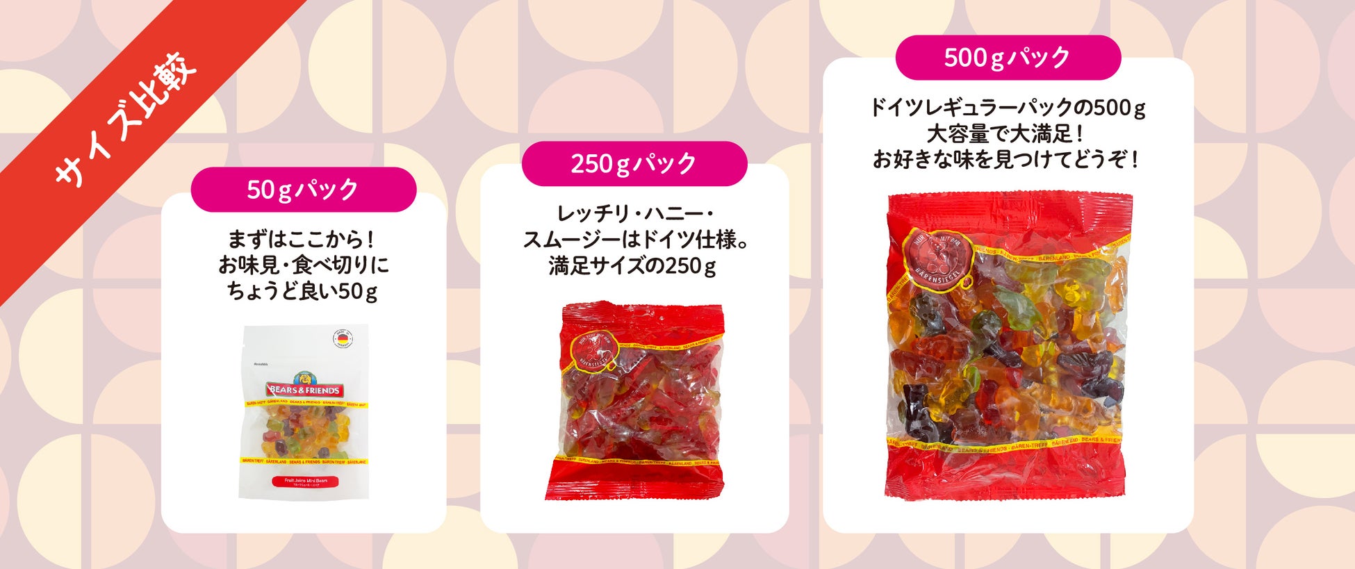 Bears & Friendsは、1996年にドイツで誕生したグミ専門店Bären-Treff(ベアレントレフ)のグミを日本にお届けするブランドです。Bären-Treffはドイツ各地に60店舗以上を展開し、人工着色料や人工香料、保存料を使用しない製品づくりを行っています。ベジタリアンの方向けにゼラチン不使用のグミや低糖のグミなど、食べる人の好みや体質に合わせた独自の商品を生み出しています。