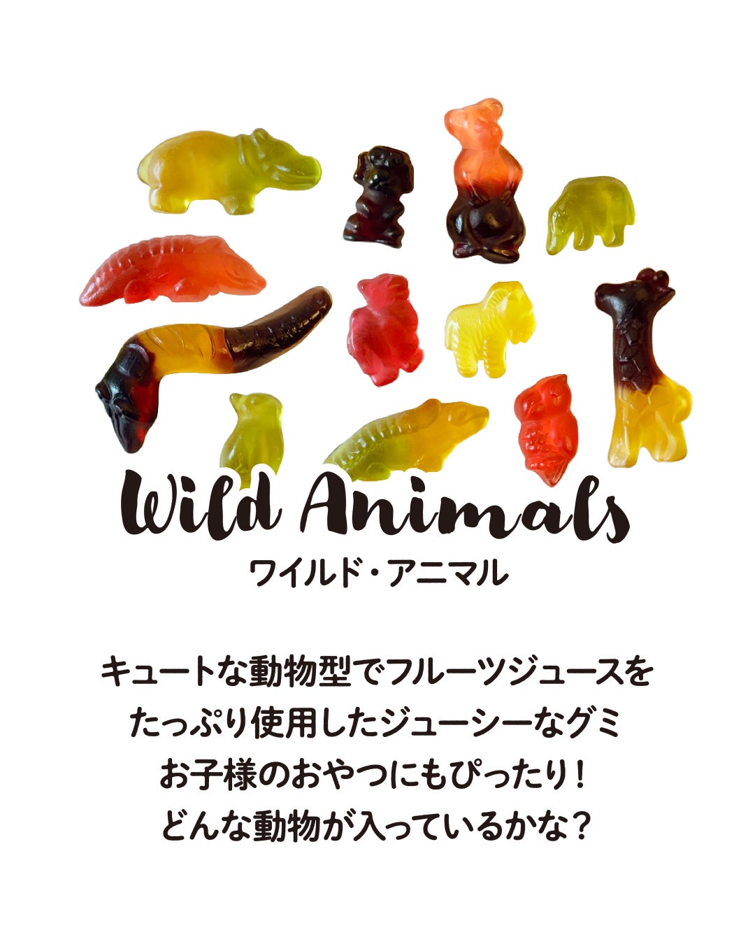 キュートな動物型の『Wild Animals(ワイルドアニマル)』は、フルーツジュースをたっぷり使用したジューシーな味わい。お子様のおやつにもぴったりで、見た目も楽しく、家族みんなで楽しめる一品です。