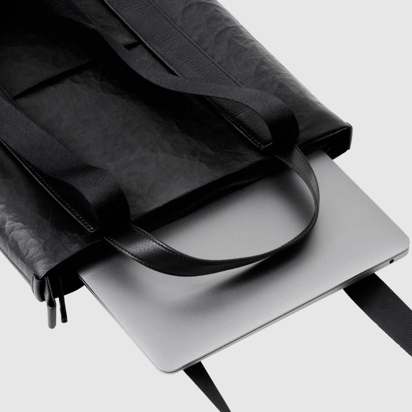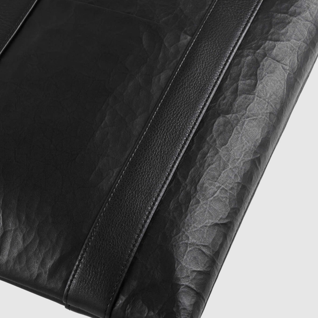 PCバッグとしてもトートとしても使える、マルチユースモデル。約340gと非常に軽量で、移動の多い日も快適に持ち歩けます。手持ちと肩掛けの両方に対応し、装いやシーンに合わせて自在にアレンジ可能。内装にはクッション材を施し、PCを優しく守ります。撥水性のある上質なレザーを採用し、雨の日も安心です。