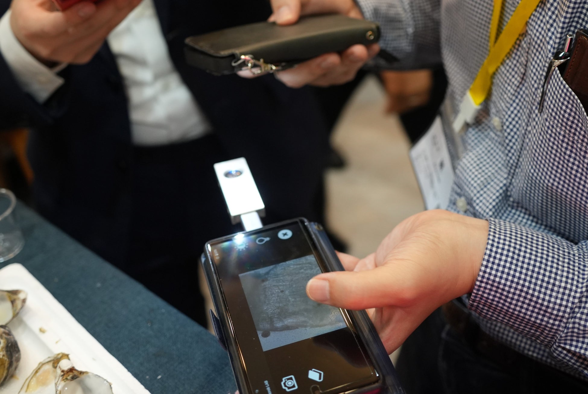また、参加者の中にいたIDDK社のCEOの上野宗一郎さんが、MID(Micro Imaging Device)を用いて牡蠣の細胞をみるということも披露されていて、ほかの参加者の興味を集めていました。
