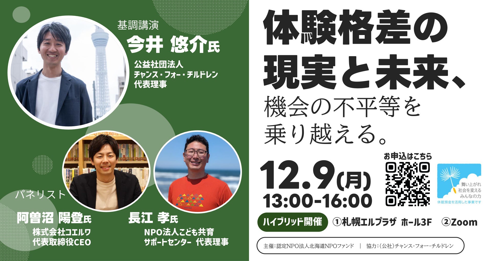 体験格差の現実と未来、機会の不平等を乗り越える。 - 認定NPO法人北海道NPOファンド主催、2024年12月9日(月)に開催。