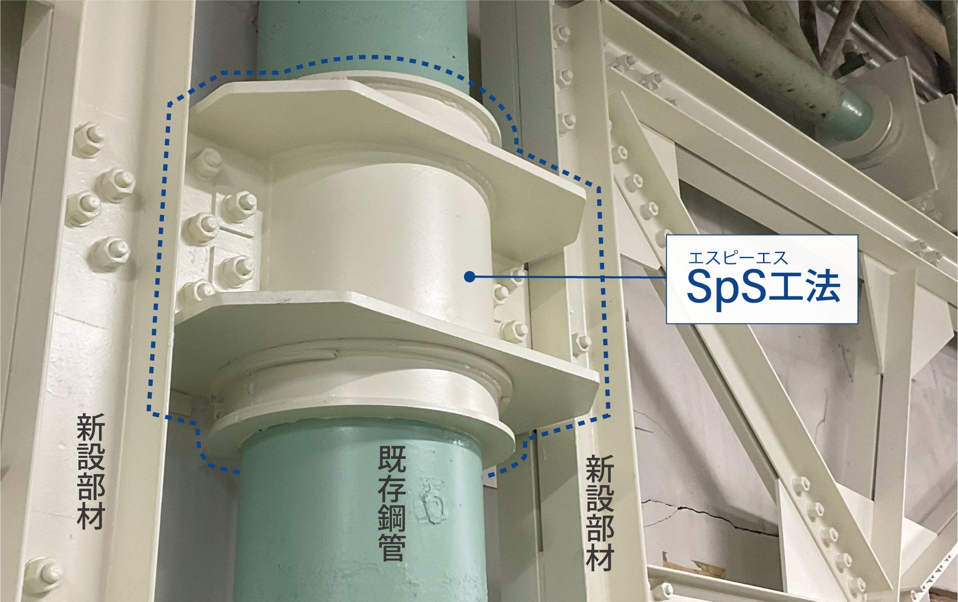 既存円形鋼管に対して溶接を使わない接合工法「SpS工法」