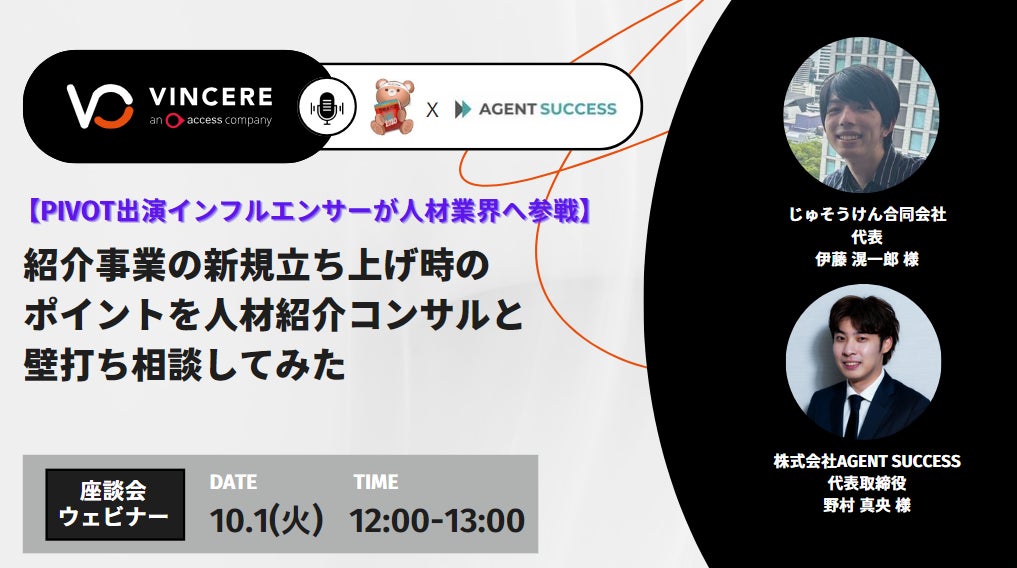 株式会社AGENT SUCCESSは、業界のリーダーと共に人材業界の最新トレンドや企業の成長戦略について議論するセミナーを2024/10/1に開催予定です。参加のお申し込みを受付開始しましたので、ご興味のある方は下記よりお申し込みいただけると幸いです。