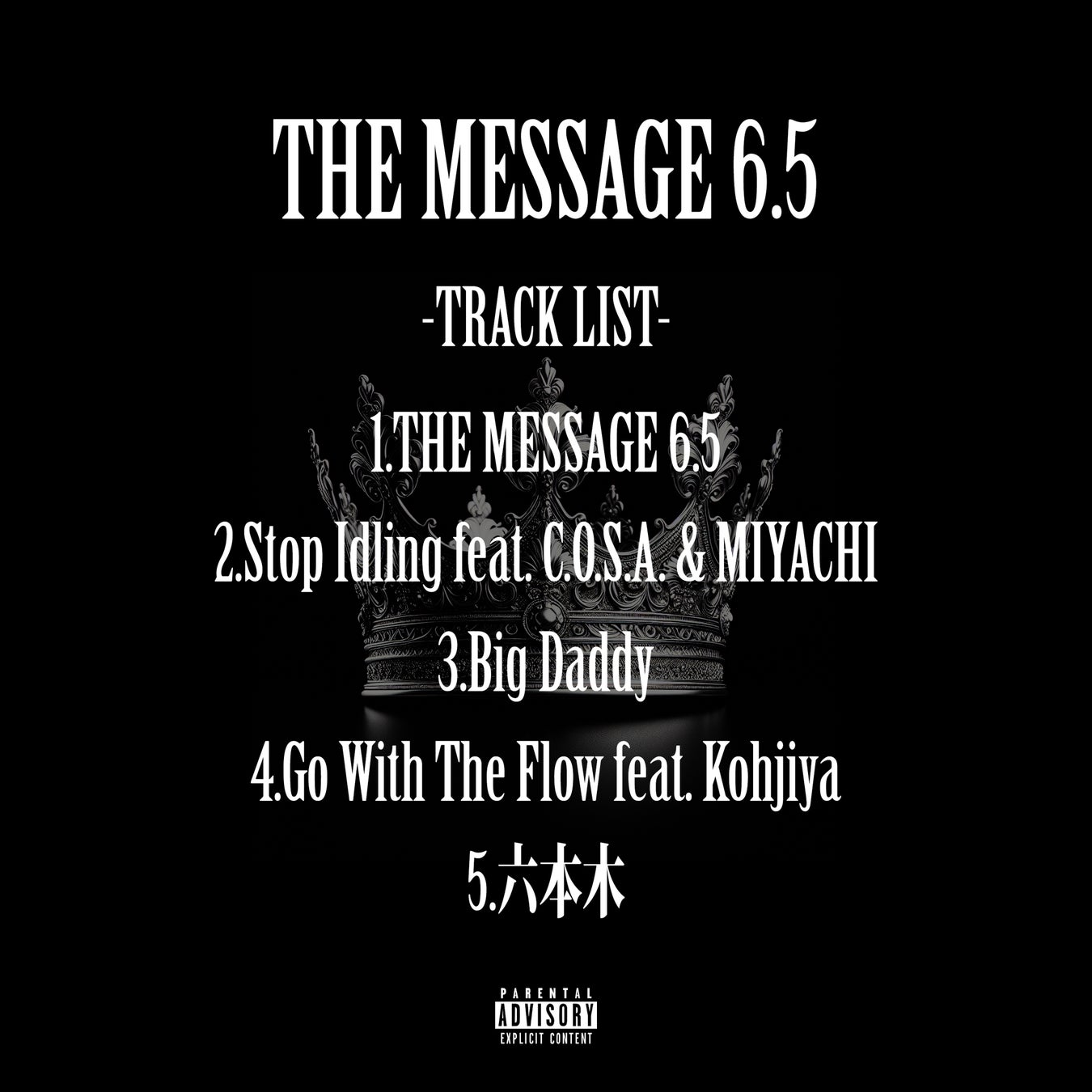 新たなEP『THE MESSAGE 6.5』をリリースした。両手の中指を立てたアートワークが刺激的な本作には、彼の現在地を示す表題曲のほか、C.O.S.A.とMIYACHI という個性豊かなラッパー二組を招いたアグレッシブな「Stop Idling」、ドリル系のビートに乗せて家族についてラップする「Big Daddy」、メ