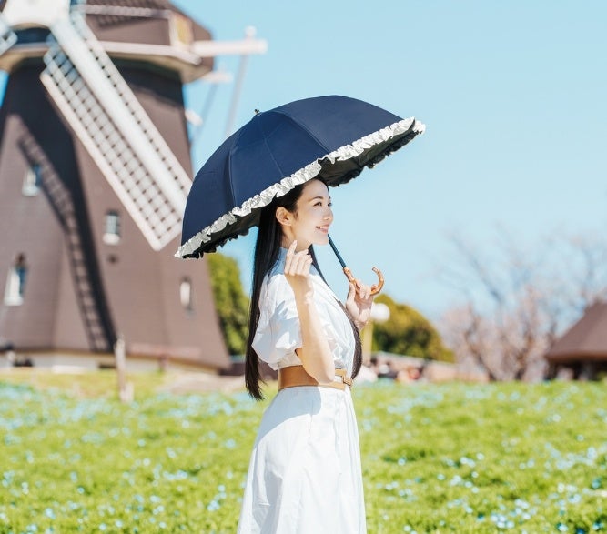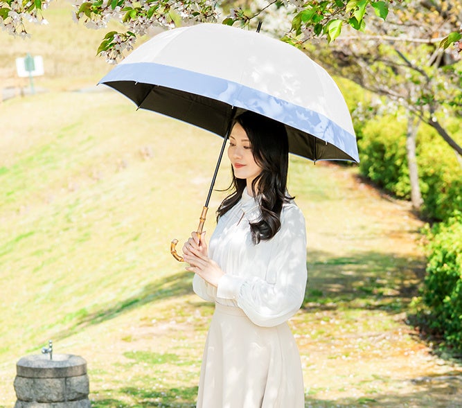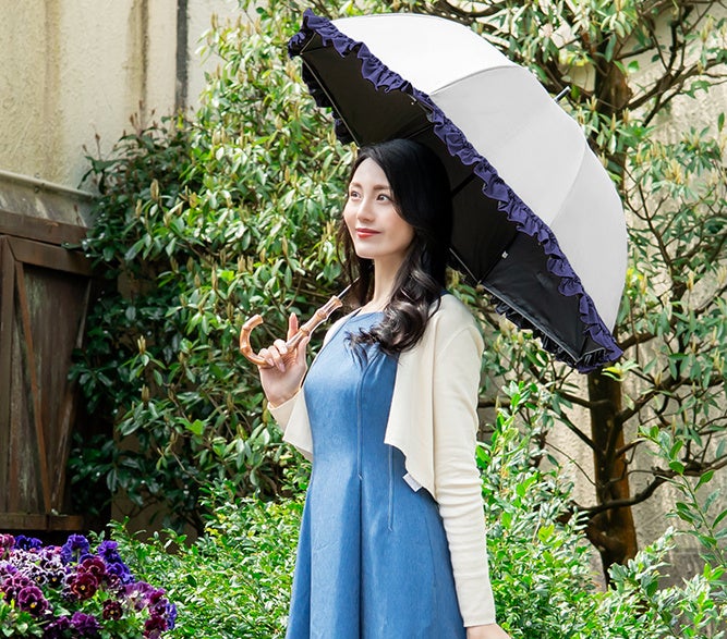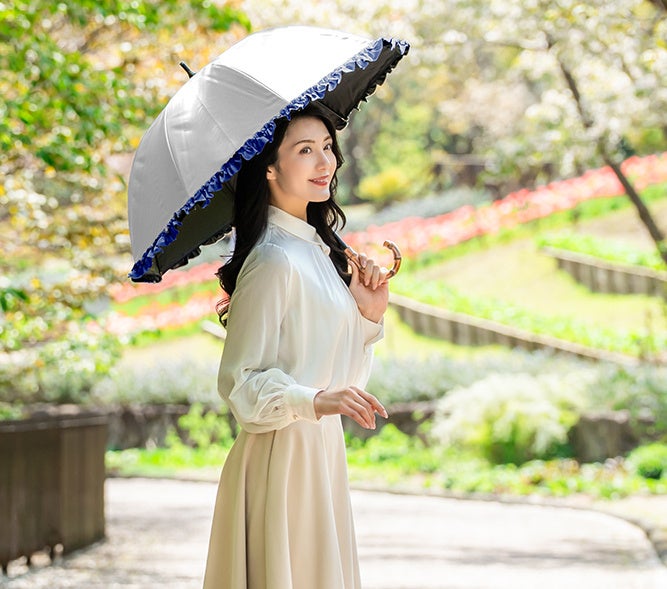 16年間愛され続ける「いつまでもキレイでいたい」という願いを叶えたい。そんな想いから生まれた100%完全遮光日傘。独自の日本製生地の質感、職人技の立体フリル、最高級の竹の手元を直接体感できます。