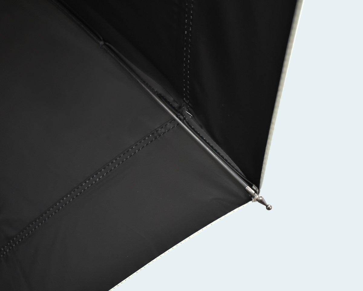 折りたたみの日傘によくある平たい形とは違い、深張りで、上品かつ効果的に遮光します。持ち運び面とシルエットを両立した日傘です。骨を折らずにたたせば、長傘のような状態のまま持ち歩けます。