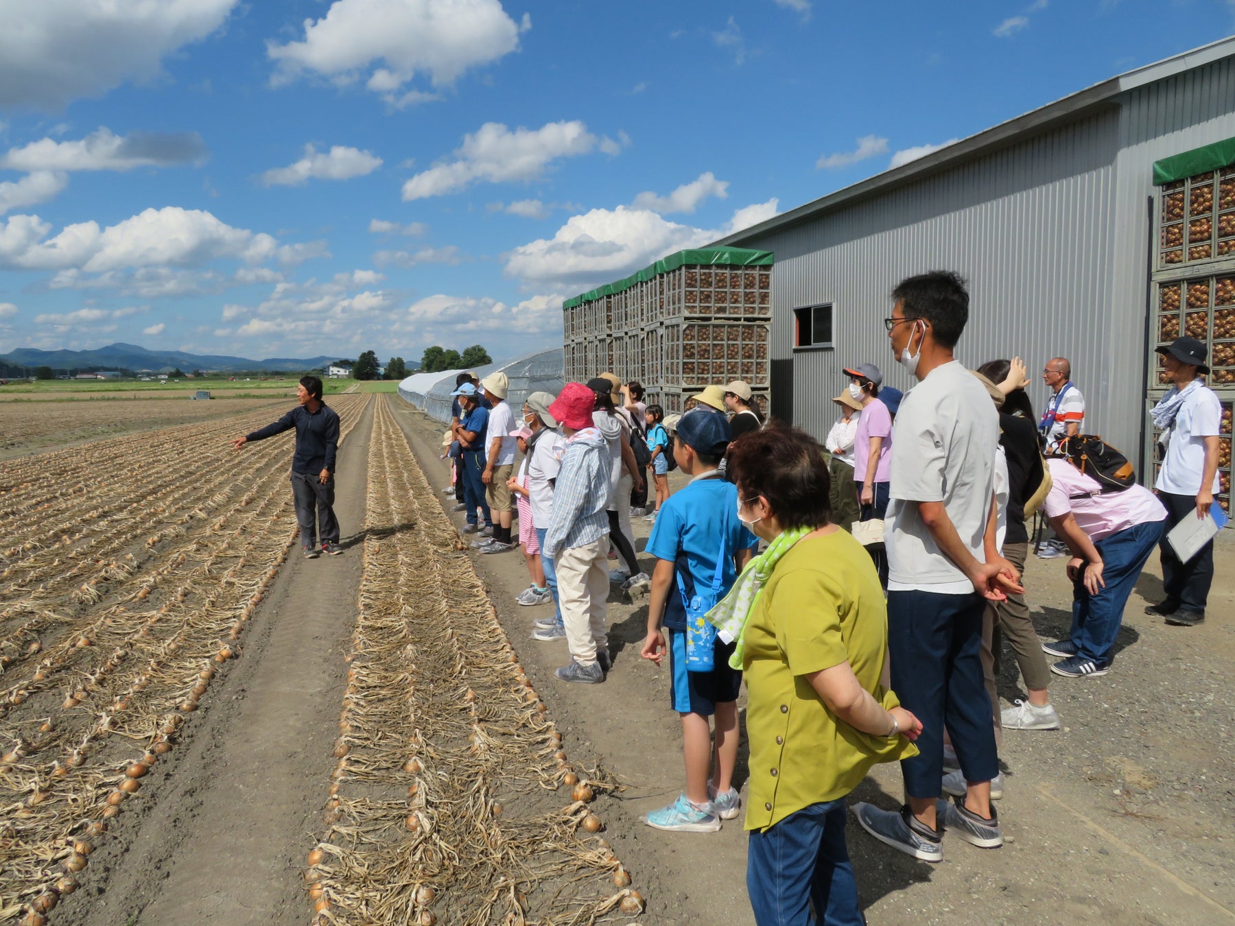 富良野市内の玉ねぎ畑や集出荷選別施設の見学と玉ねぎ料理を試食するイベントを開催。富良野市の主力産品である玉ねぎをとおして、畑から食卓までを体験してもらいました。