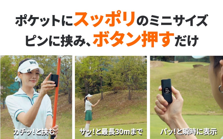 ・本番グリーンに合わせ最長30mまで瞬時に正確に測定、もたつかない