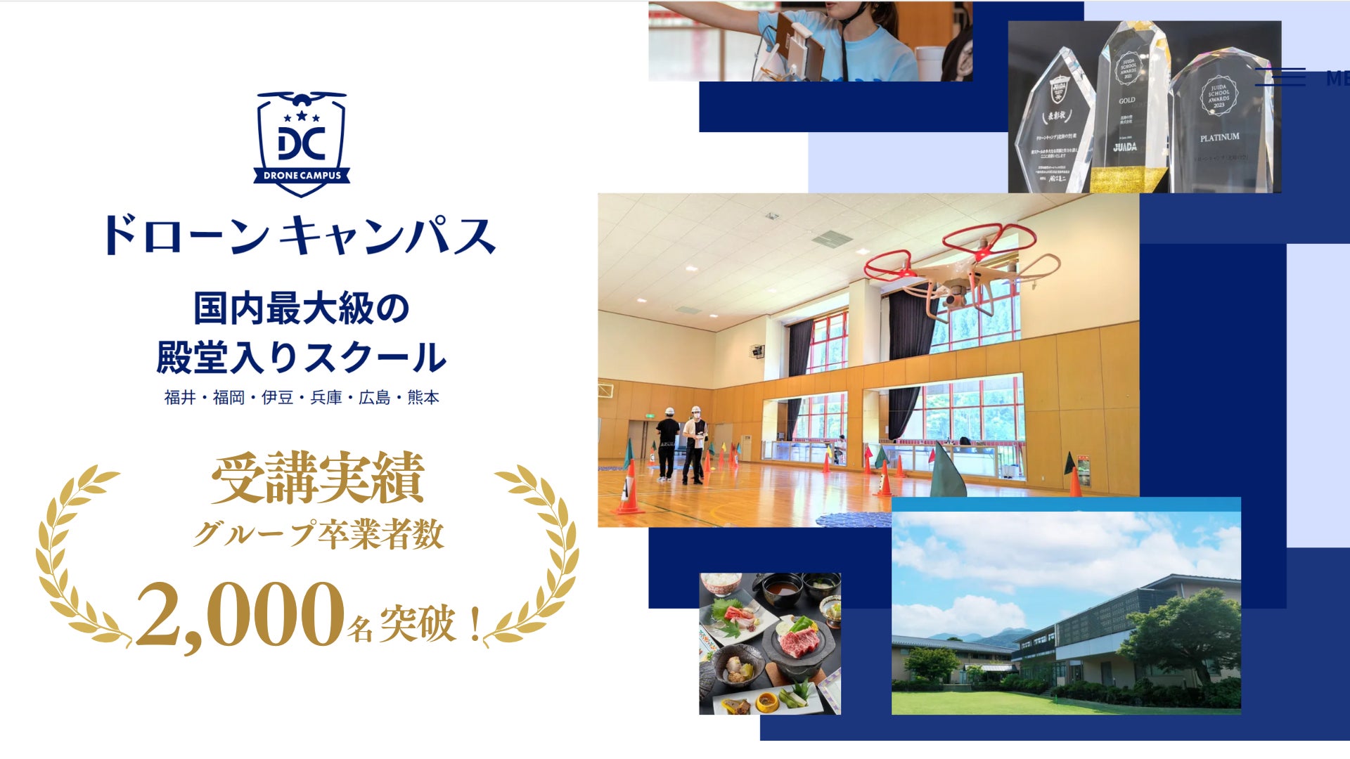 北陸の空株式会社(所在地:福井県鯖江市、代表取締役:久森章裕)は、2025年現在、ドローンキャンパス 福井の空(福井県)、ドローンキャンパス 福岡の空(福岡県)、ドローンキャンパス 伊豆の空(静岡県)、ドローンキャンパス 兵庫の空(兵庫県)、ドローンキャンパス 広島の空(広島県)、ドローンキャンパス 熊本の空(熊本県)、ドローンキャンパス 富山の空(富山県)の7拠点を運営しています。2018年の開校以来、延べ2,000名が卒業し、うち1,000名が国土交通省登録講習機関による国家資格を取得しました。地方の廃校や公共施設を活用した“1泊2日・短期集中型”講習スタイルと、インストラクターの地域採用モデルによる運営を両立し、全国6拠点で着実に成果を上げてきました。