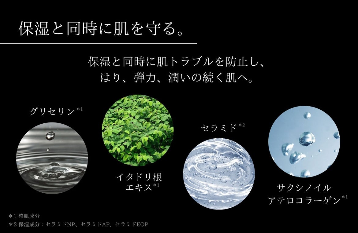 化粧水、乳液、美容液、クリーム、全てをこれ1本で完結。肌荒れなどの肌トラブルを防ぎ、肌にはり、弾力、潤いを与えます。顔だけでなく全身にもお使いいただけます。