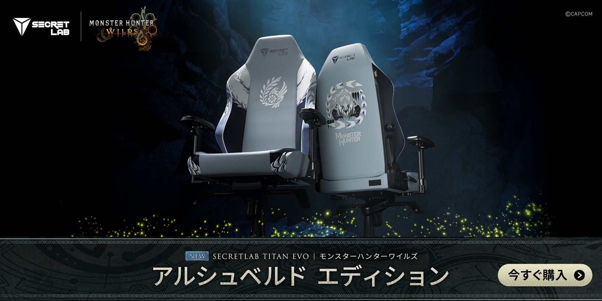 Secretlab モンスターハンターコレクション(ミラボレアス・リオレウス)に、新たにTITAN Evo モンスターハンターワイルズ「アルシュベルド」エディションが加わりました。