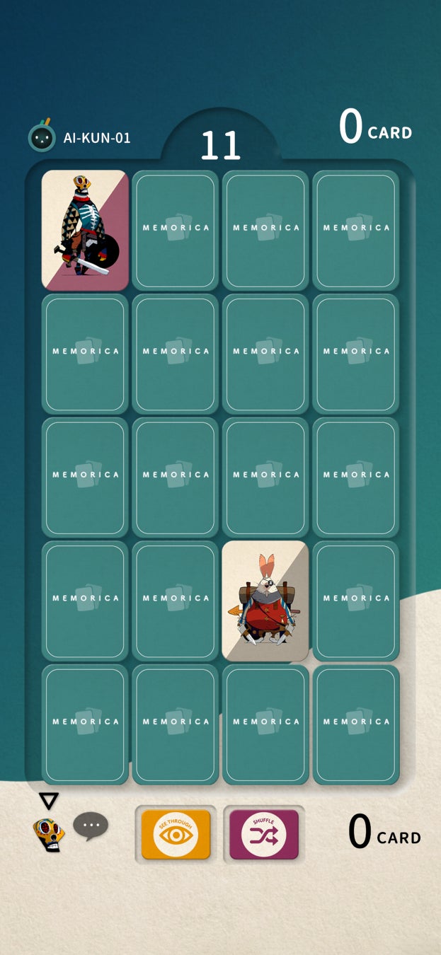 カードをランダムにシャッフルすることで、相手が覚えたカードの位置をリセットします。