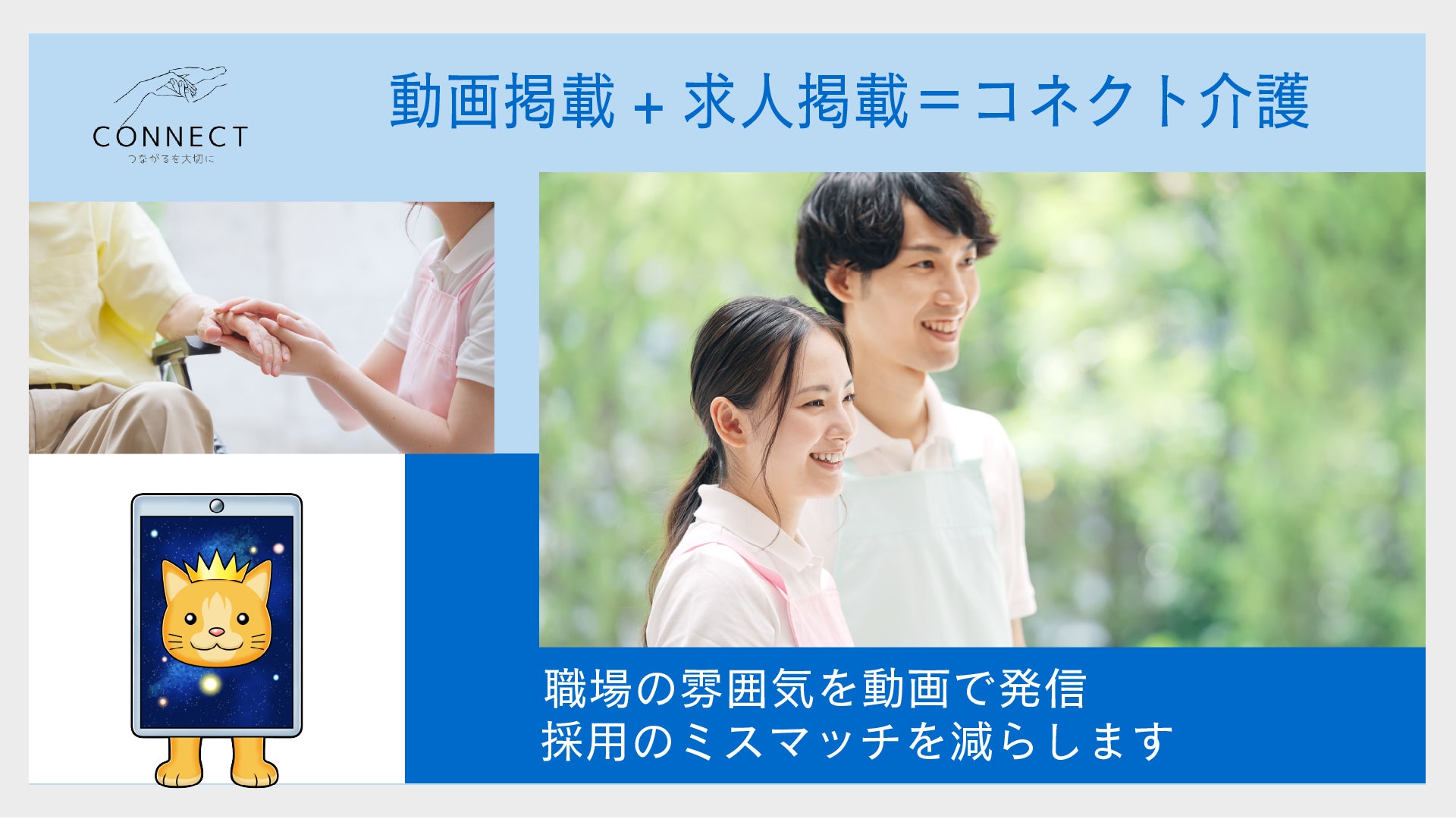 介護職はネガティブなイメージがあるかもしれません。しかし実際は、人生経験豊かな高齢者の話を聞くことは楽しく、そんな高齢者の方の想いを叶えるために、施設みんなで協力していくことにもやりがいを感じられる仕事です。職場で楽しく働いている様子を映像で伝えることで、若者に介護職の魅力を訴求できると考えています。また、動画を掲載するだけではなく、自分に合っている職種がわかるような診断や、質問に答えられるようなチャットを作るなど、総合的な求人サイトを目指しています。