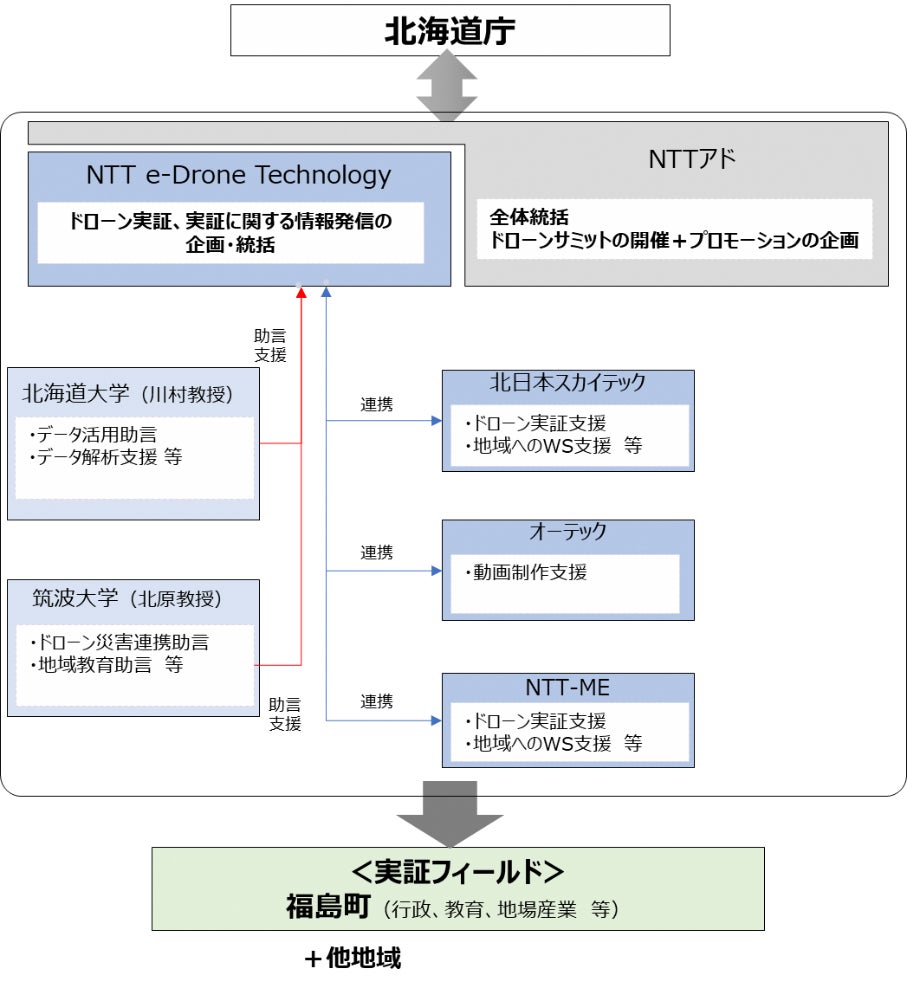 株式会社エヌ・ティ・ティ・アド(代表取締役社長:東 明彦、以下「NTTアド」)と株式会社NTT e-Drone Technology(代表取締役社長:滝澤 正宏、以下「NTTイードローン」)を幹事会社として組成した「ほっかいどうドローン実装促進事業推進コンソーシアム」は、北海道が目指すドローンの社会実装による地域課題の解決に向け、自治体の関心の高い災害対応に関し、今年7月31日に第1回目飛行実証を実施しました。 第2回目となる今回の実証は、昨今の大規模地震発生のリスクの高まりを鑑み、災害時におけるドローンの活用にフォーカスし、福島町防災訓練を舞台に福島町、DX体験授業の一環でドローンを学んでいる福島商業高等学校ならびにドローンを活用した業務効率化に取り組む地場企業の中塚建設株式会社とも連携し実施します。 |