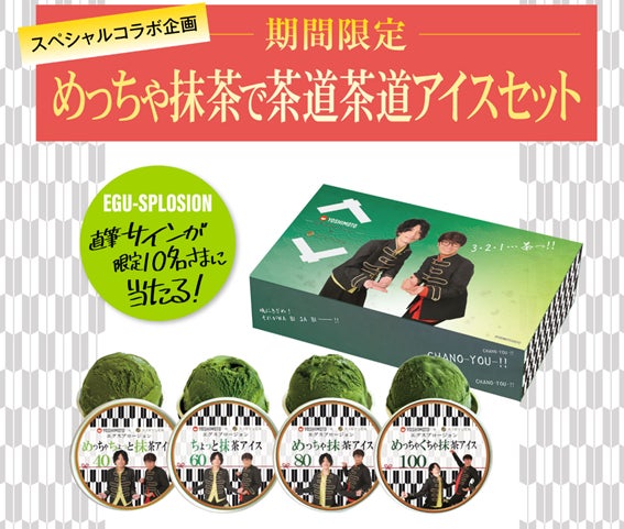 吉本興業株式会社「エグスプロ-ジョン」(代表取締役社長:岡本昭彦/本社所在地:大阪府)と、株式会社京都利休園(代表取締役:中井保仁/本社所在地:京都府)は2024年12月14日より、「エグスプロージョン」×「京都利休園」のコラボレーション商品『めっちゃ抹茶で茶道茶道アイス』を販売開始いたします。