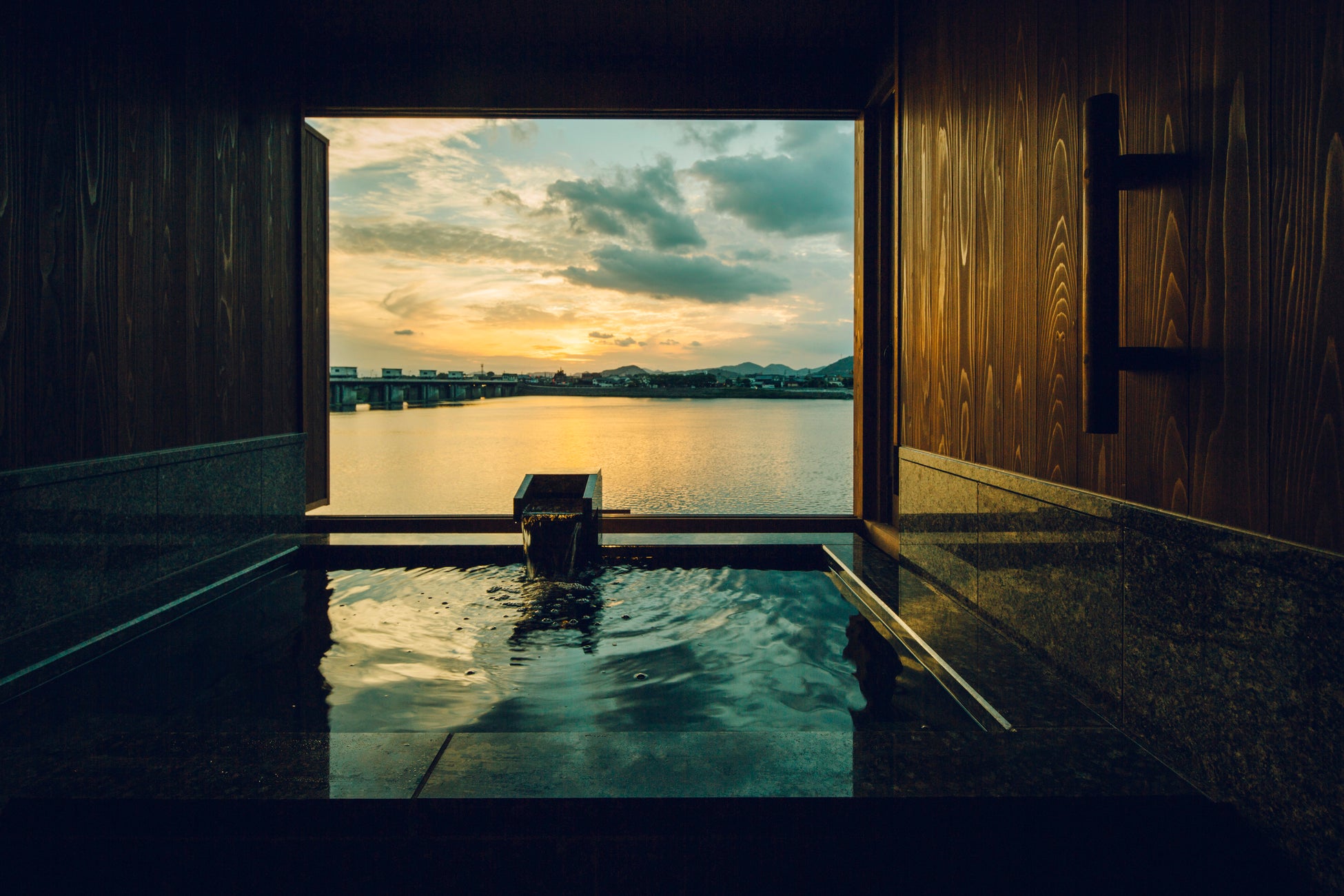 全室に備えられた半露天風呂で、川のせせらぎをBGMにしながらの贅沢なひとときを。湯に浸かりながら、犬山城や星空を眺める時間は格別です。