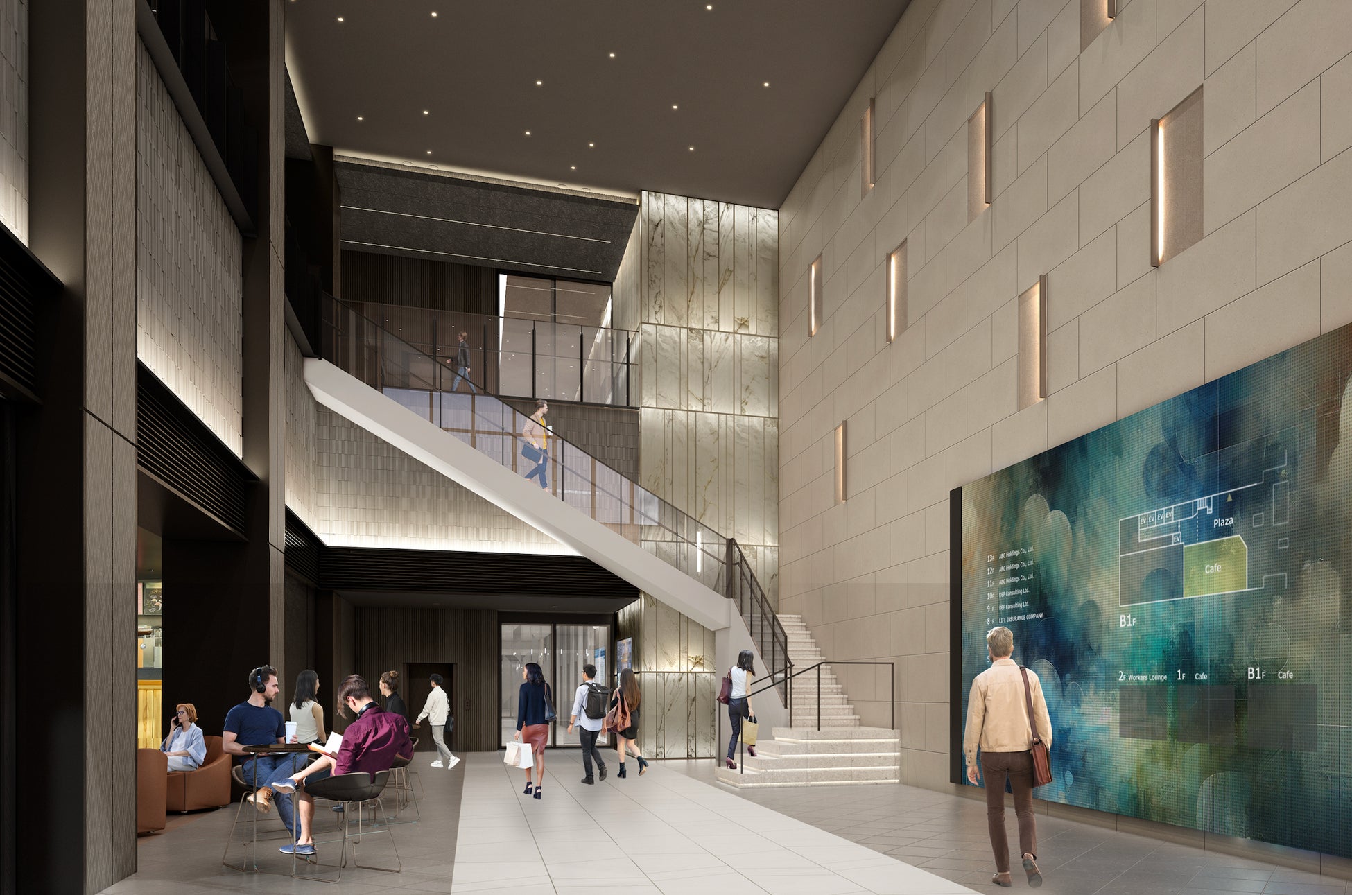 光壁を施設のアイコンとして、チカホや駅前通からの視認性を高め、施設内へ人々を誘引します。店舗との機能連動による『にぎわい』の創出、パブリックビューイングやセミナー等イベント開催により『文化』『交流』の場となり、パブリック・コミュニティを醸成します。デザイン照明、吹抜けからの地上からの自然光、大型サイネージによる演出にて、質の高い空間を創出します。大型デジタルサイネージでは、アーティスト作品のデジタルアートや多様な情報を発信するとともに、パブリックビューイングやセミナー開催時に活用します。https://ichigo-the-village.jp/sapporo/