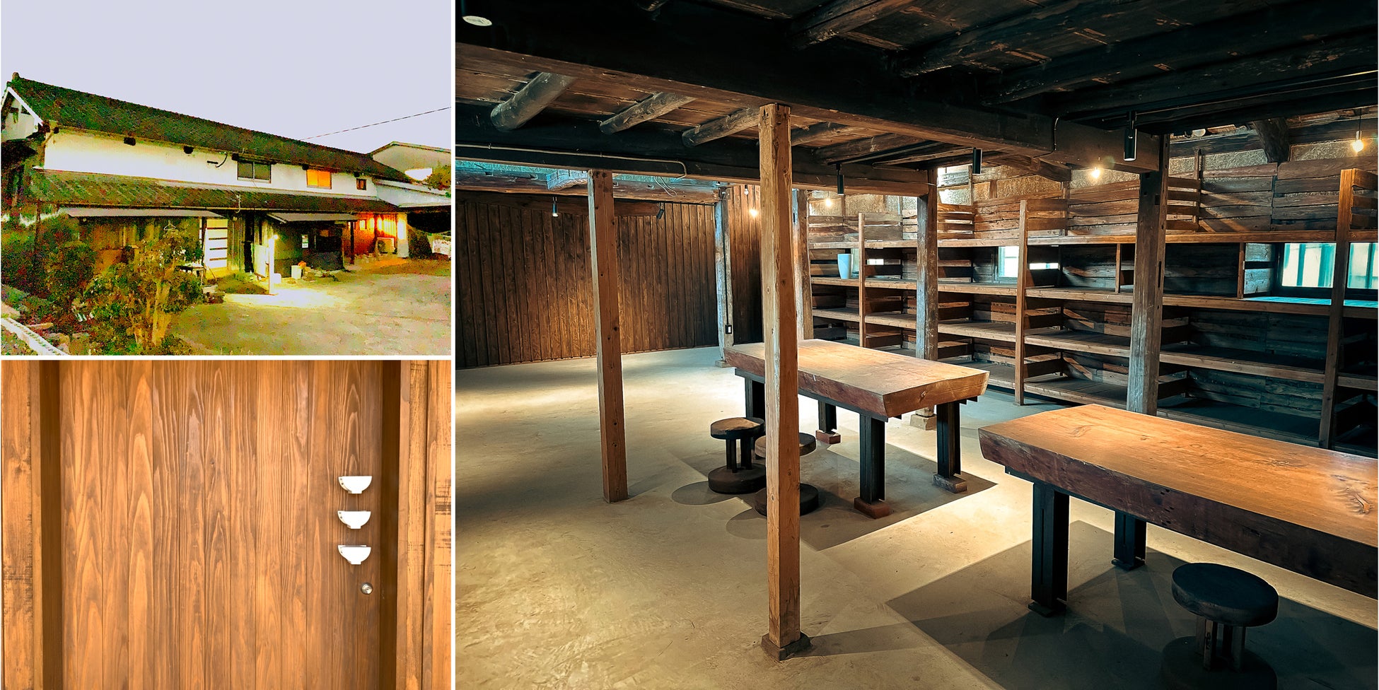 焼き物問屋だった古民家をリノベーション。古材の焦茶色に、白い磁器がよく映える空間になっ