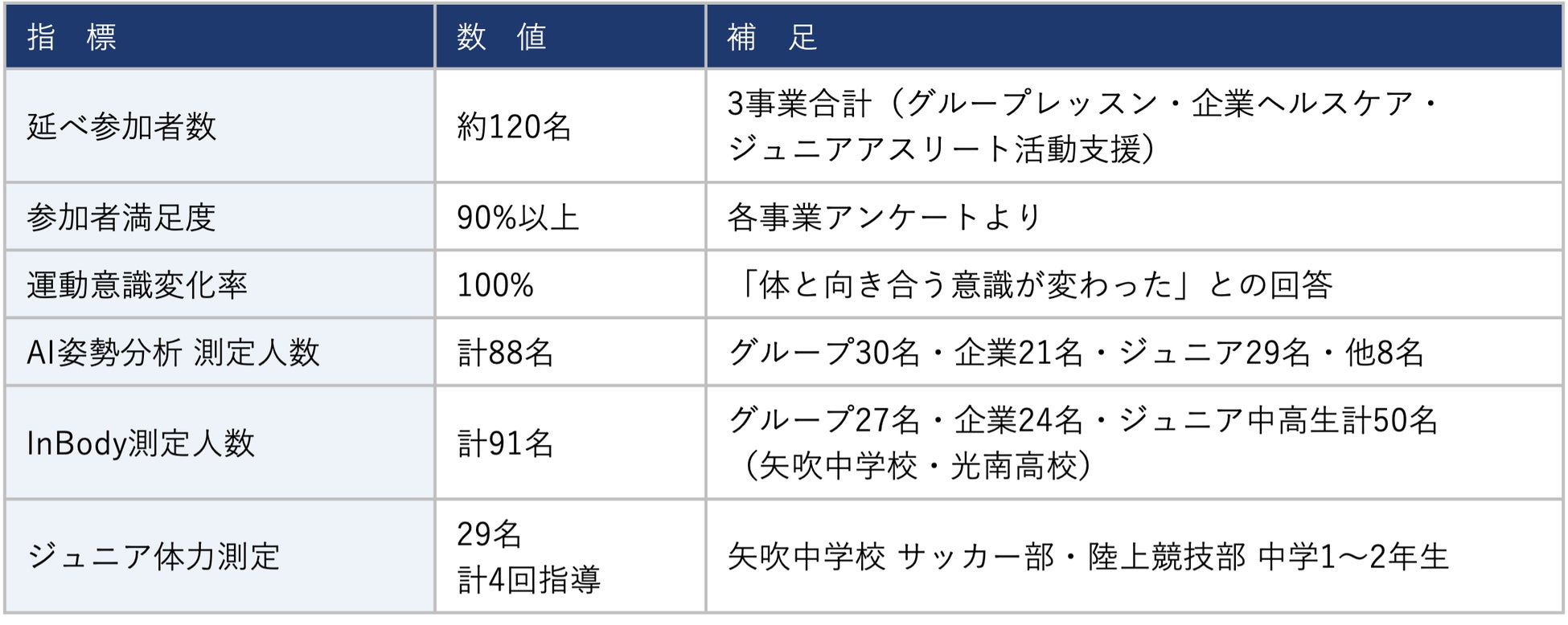 グループレッスン・企業向けヘルスケア・ジュニアアスリート活動支援の3事業の成果を公表