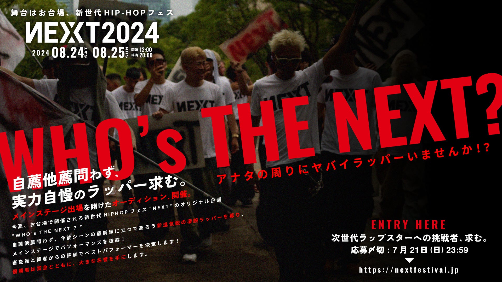 その手で夢をつかめ!HIPHOPフェス「NEXT2024」にて、未来のラップスター応援企画「WHO's THE NEXT?」実施決定!