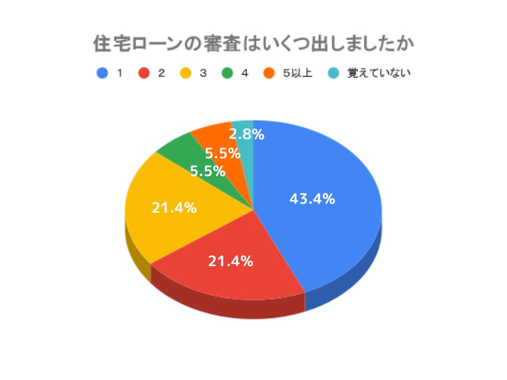 ■住宅ローンの審査申込は2〜5以上出しているユーザーが約53%も