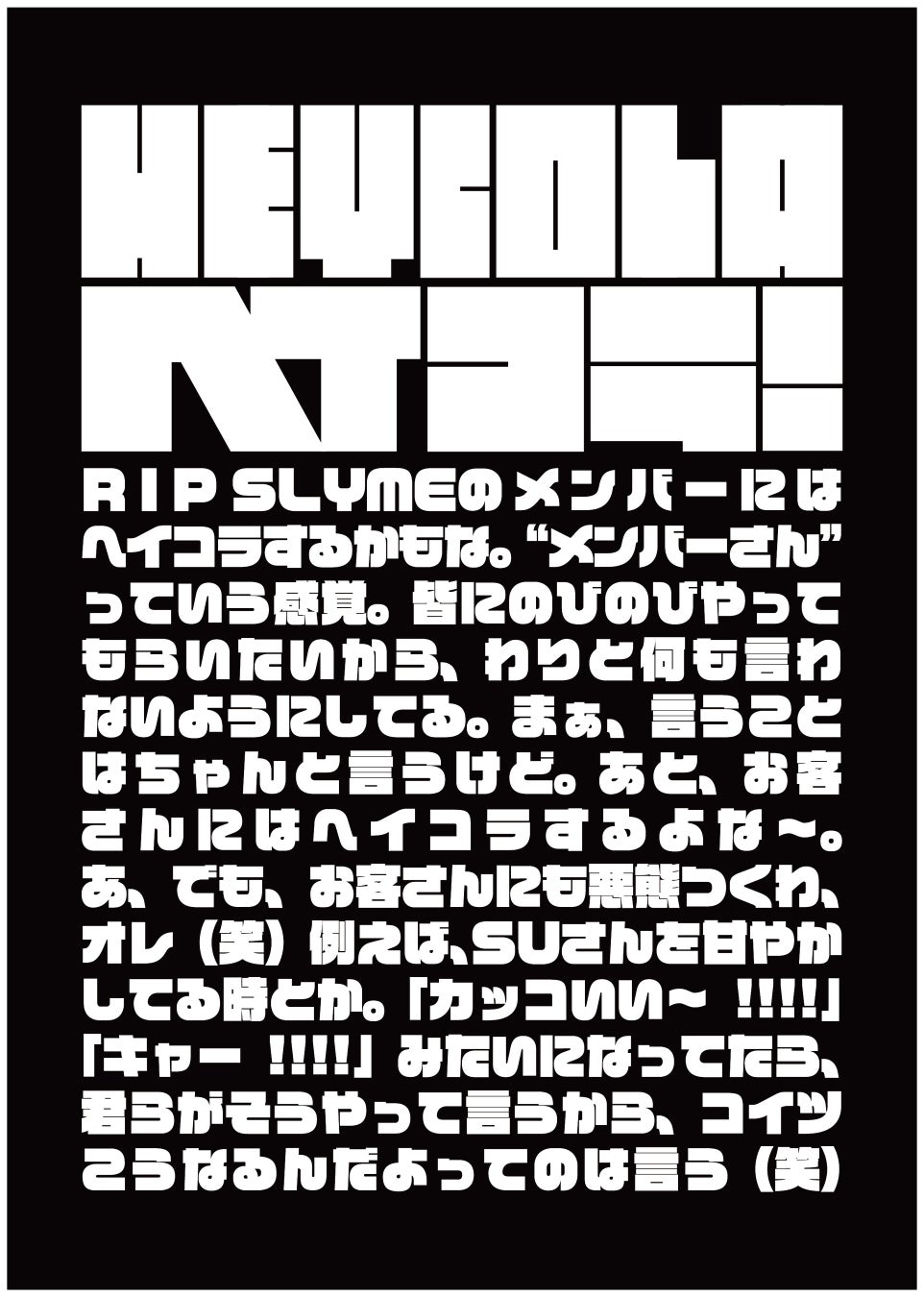 世の中の媚びへつらいを切り取るコラムブランド『HEYCOLA|ヘイコラ』アーティストコラボ第三弾が公開(リップスライム PES × KOMOREBI OTA × オレンジレンジ RYO)