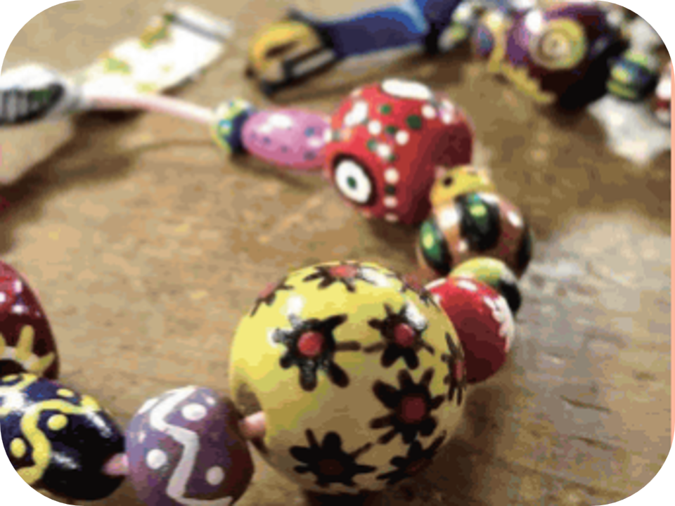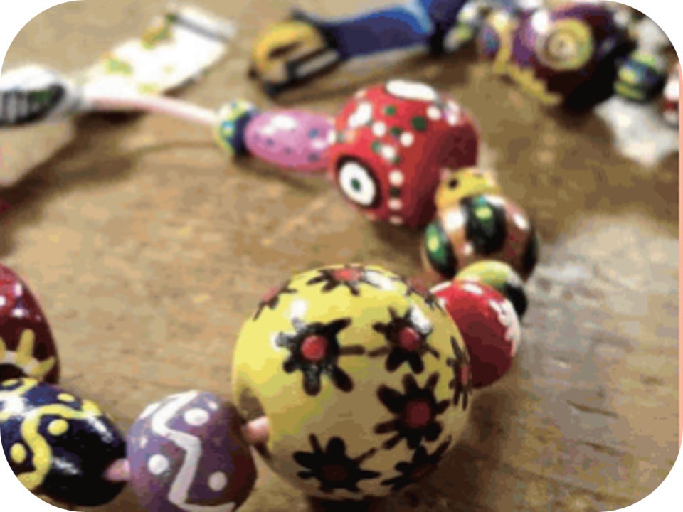 アフリカンビーズを手作り!一つひとつのビーズに込められた意味を感じながら、世界に一つだけの「自分だけのお守り」を持ち帰ることができます。