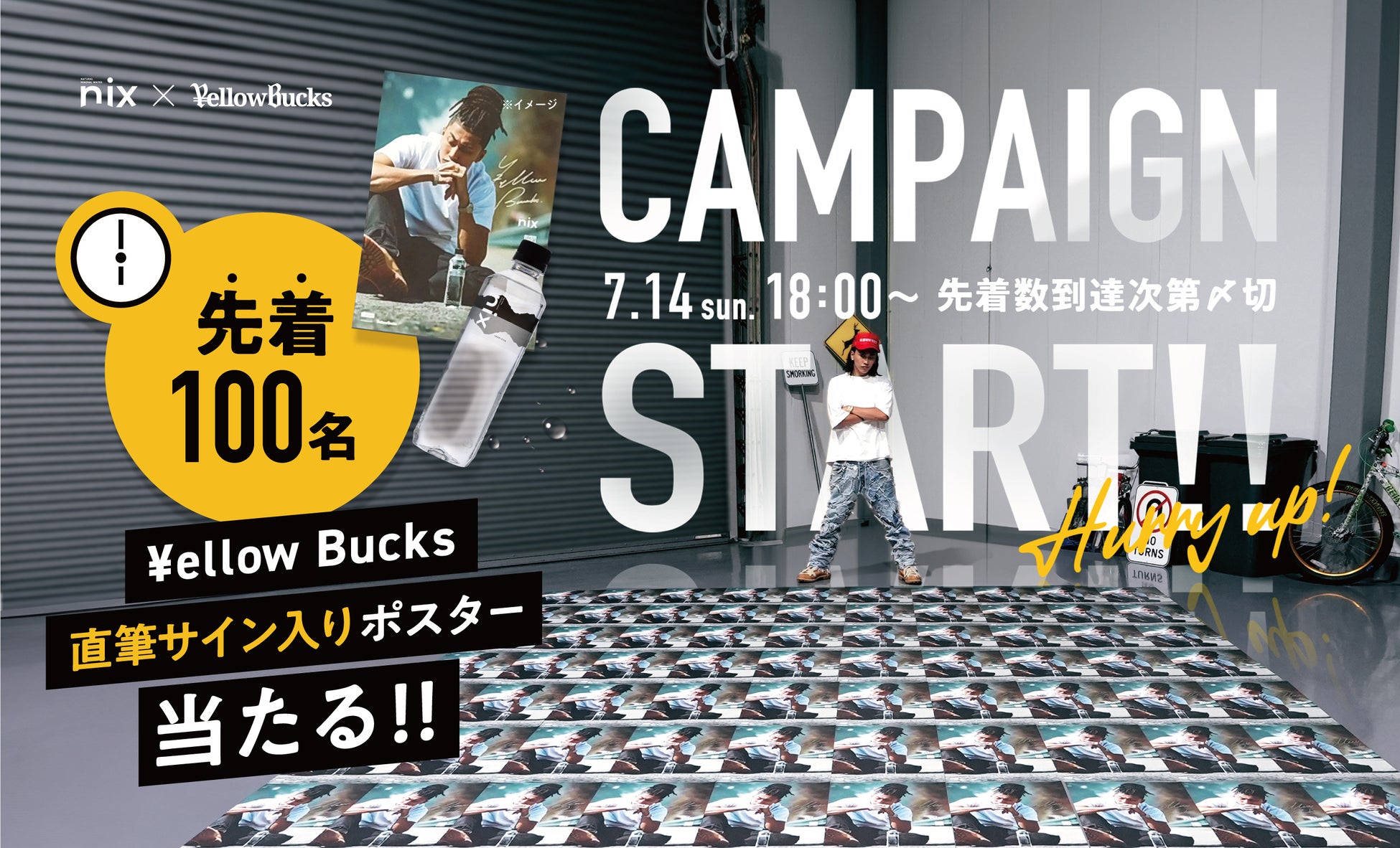 nix × ¥ellow Bucksの第一弾コラボレーションキャンペーンも大好評に終わり、特典である「50名様限定 1ケース無料クーポンコード」は通常販売開始の7月14日(日)から利用可能となっています。