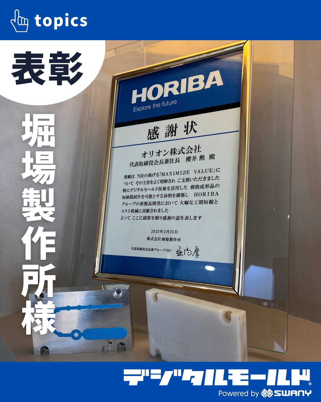 「~デジタルモールド®技術を活用した樹脂成形品の短納期試作を可能とする体制を構築し、HORIBAグループの新製品開発において大幅な工期短縮とコスト低減に貢献されました~」