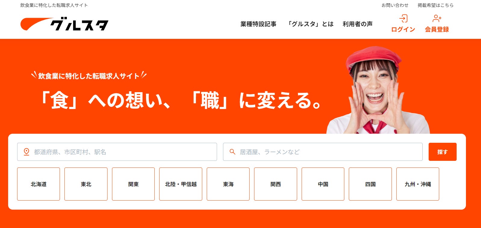 【飲食業の正社員特化転職求人サイト グルスタ】
