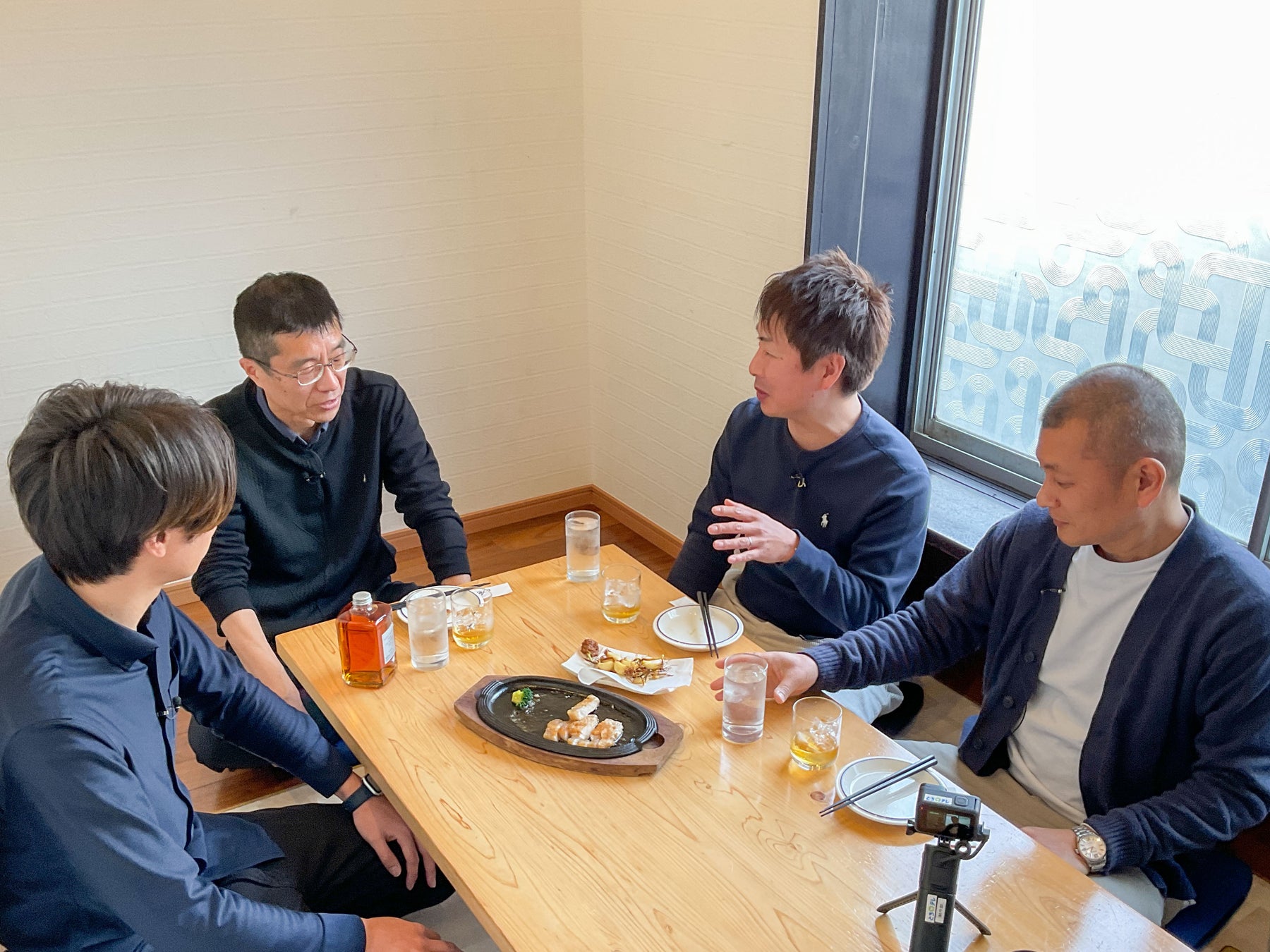 工場内に立ち込めるウイスキーのいい香りに包まれたお酒大好きな2人は、さくら市のお店でブラックニッカクリアのハイボールやフロムザバレルのロックを片手にマッチする料理を堪能。