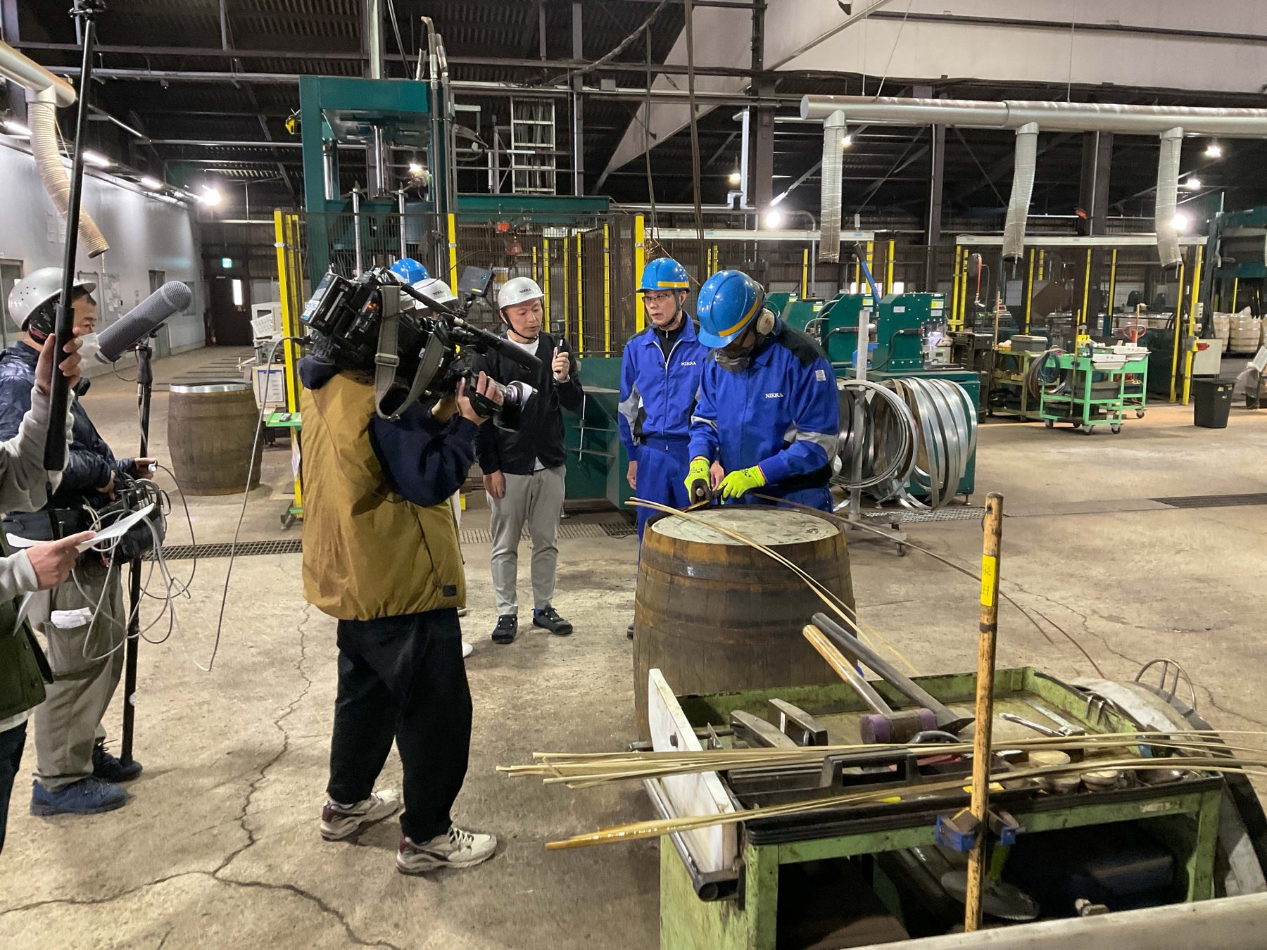 東京ドーム6個分の広大な敷地で、わずかな人数の職人さんたちが樽を整えたり、大迫力で樽内部を焼く工程を見学。