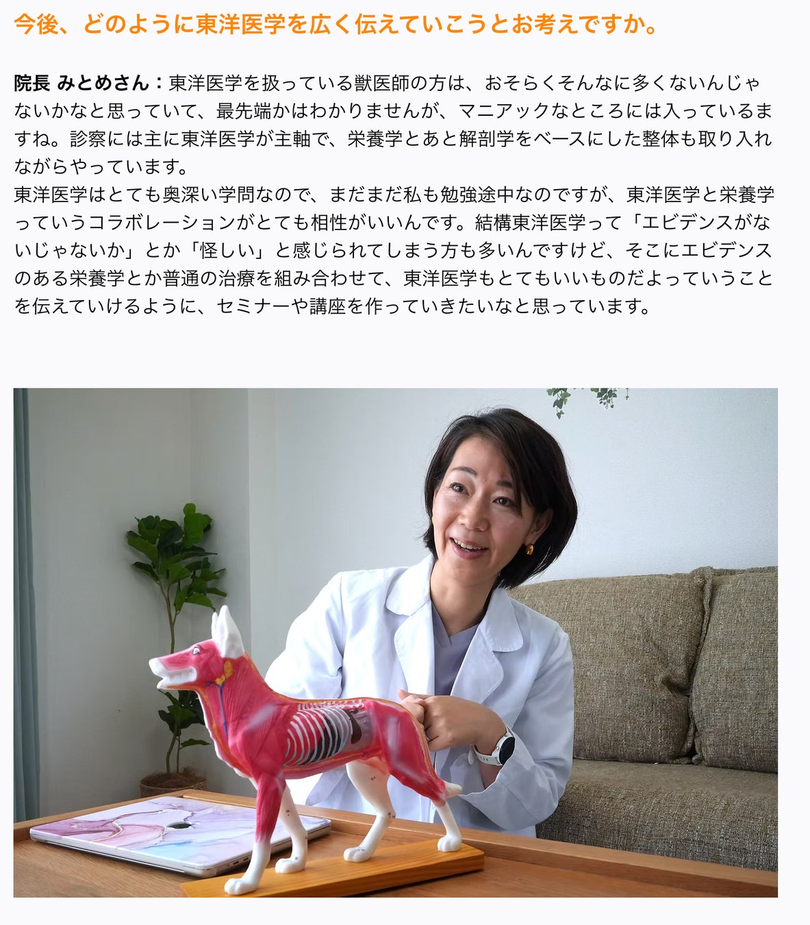 「私たちは、ペットの健康管理から専門家の声を届けるインタビューに至るまで、多岐にわたる情報を提供し、飼い主の皆さまが安心できる環境づくりをサポートしてまいります。今後も、地域社会との連携を強化し、ペットの福祉向上と業界の透明性の確保に努めるとともに、ペット業界の持続可能な発展を目指してまいります。」
