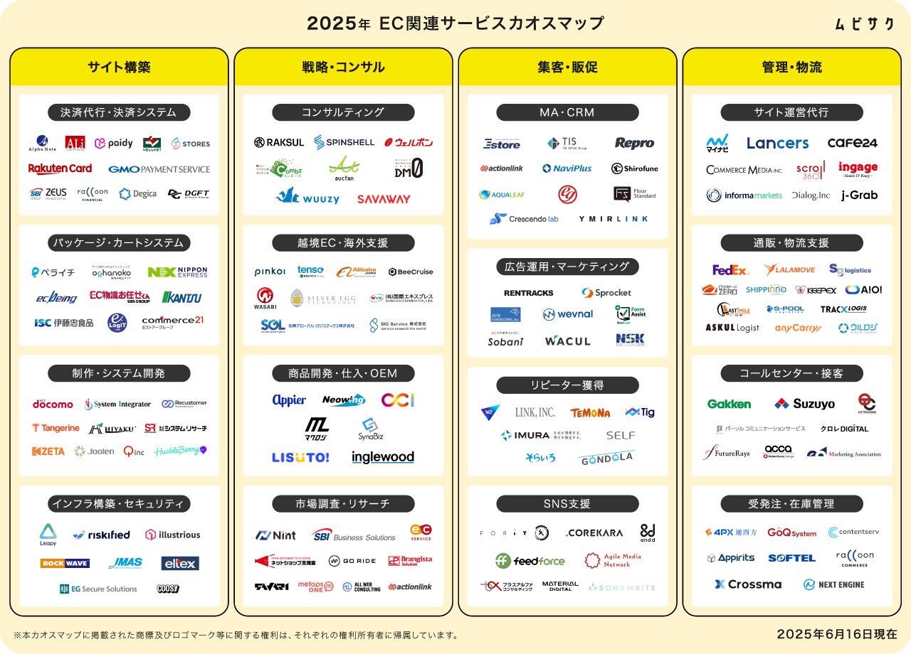 2025年版「EC関連サービスカオスマップ」をムビサクが公開!決済システムから物流支援まで掲載