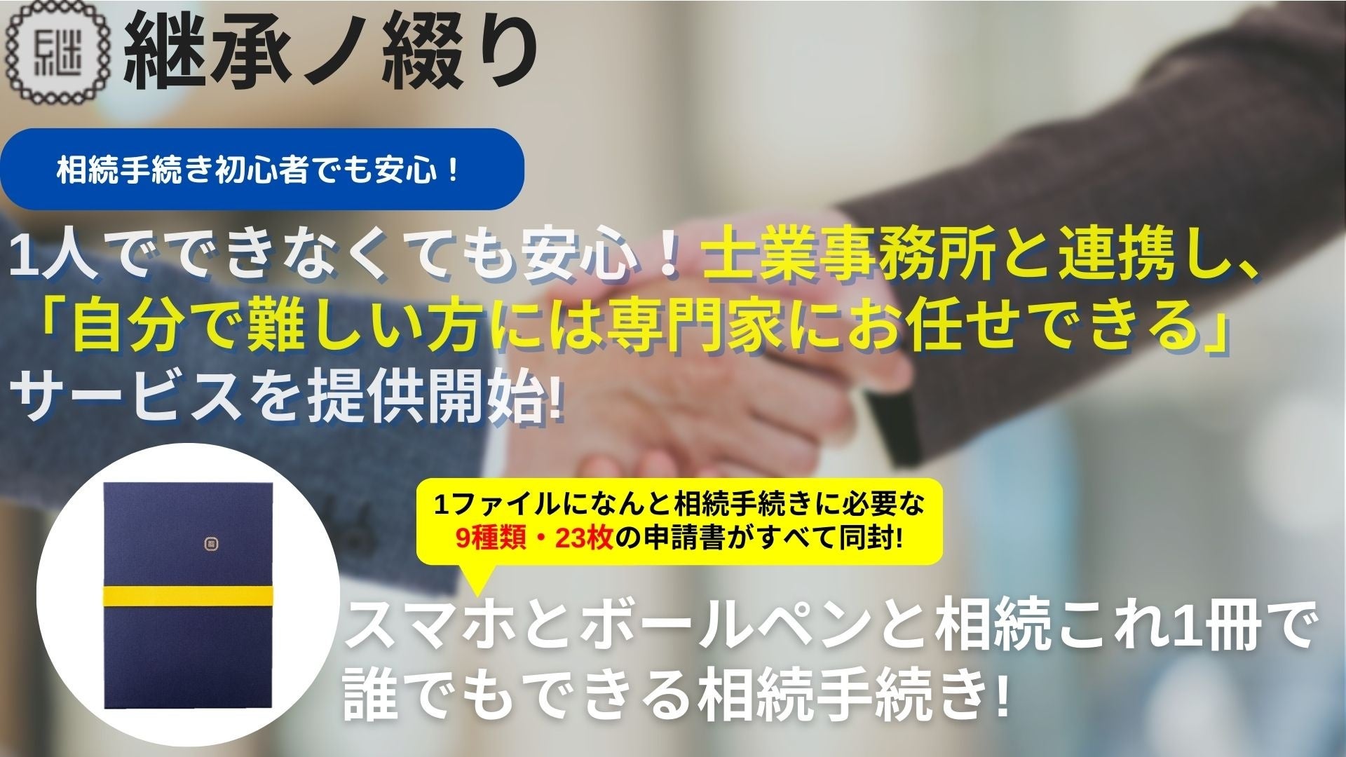 相続手続きサポートファイル「相続これ1冊(継承ノ綴り)」はこの度、士業事務所と連携し「自分で難しい方には専門家にお任せできるサービス」を開始いたしました。