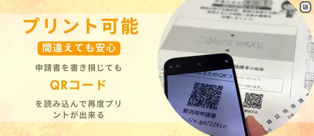 多くの書類を記入する必要があるため、書き損じてしまうこともあると思います。しかし、万が一、書き損じた場合でも、添付されたQRコードをスキャンすることであなたが必要な申請書のページにアクセスし、再度プリントアウトすることができるので安心です。