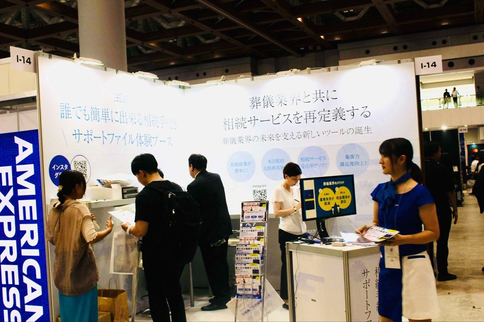 継承ノ綴りは士業事務所の方々から多くのご理解と共感をいただいております。先日行われた葬儀社・士業事務所の方が多く集まる「第10回 エンディング産業展」に出展した際も非常に多くの反響をいただきました。ブースでは、実際に葬儀業や士業の方々に継承ノ綴りで相続手続きを行う体験をしていただきました。