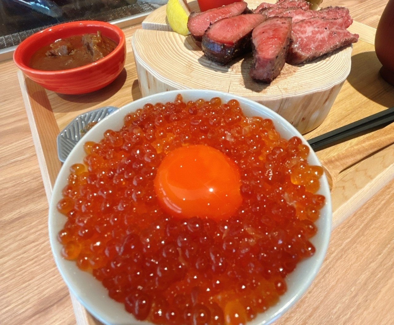◎プラス料金で、羽釜ご飯を「高級たまごといくらご飯」にチェンジできます。