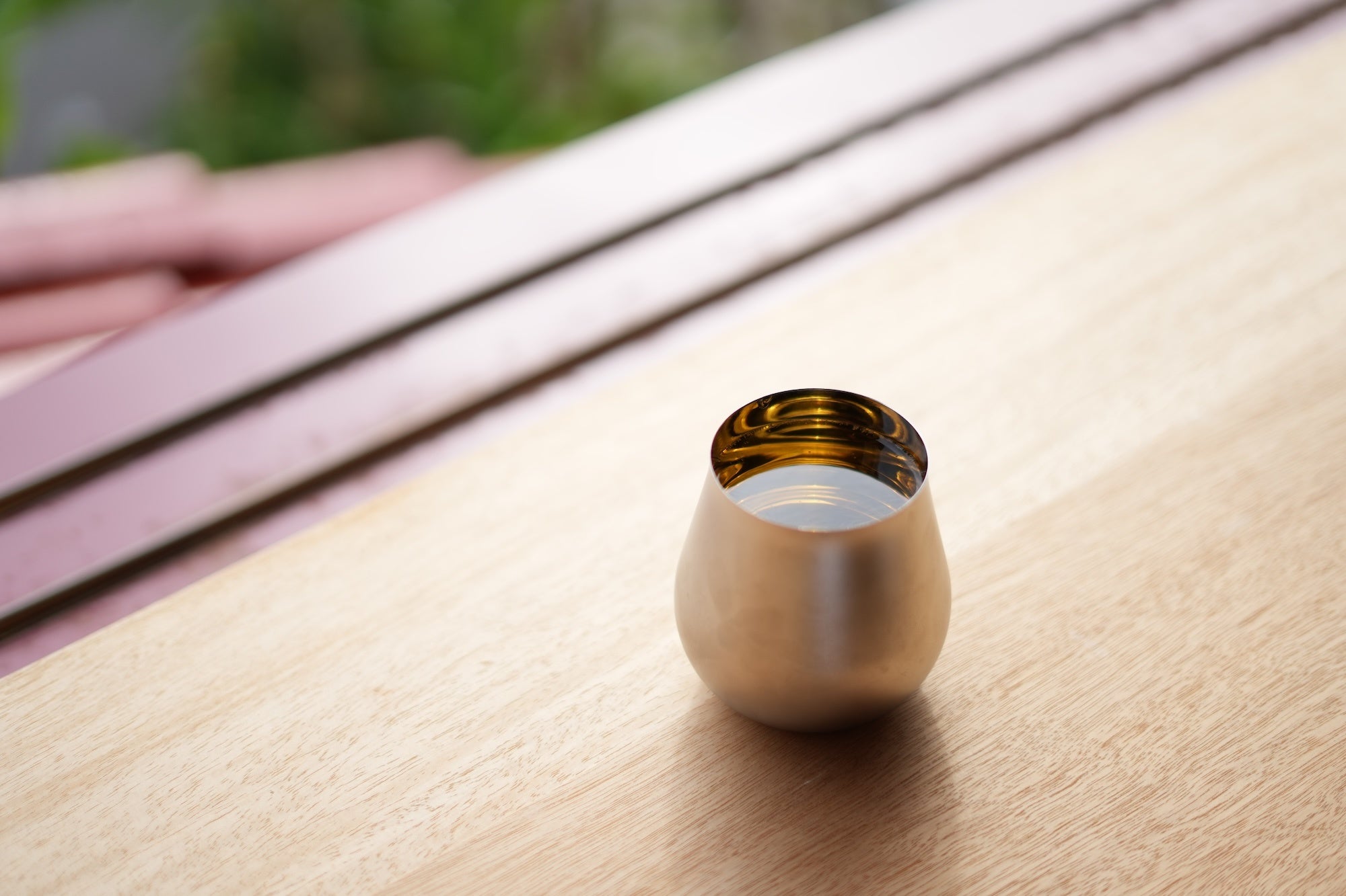 「ハイボールの性格から考えると、氷・炭酸・ウイスキーがいかにマッチしていて飲みやすいかがポイントです。emten - tumbler の場合、氷を入れないので、薄まらないのが良い。また、タンブラー自体が冷たくなるので、持ったときや唇をつけたときに、液体の感覚を感じられるのはとてもメリットです。落としても割れない点も、とてもサステナブルだと感じます。個人的な感想としては、ずっと触っていたくなる質感がすごく気に入っています。道具というのは、使えば使うほどに愛着が湧きますね。」