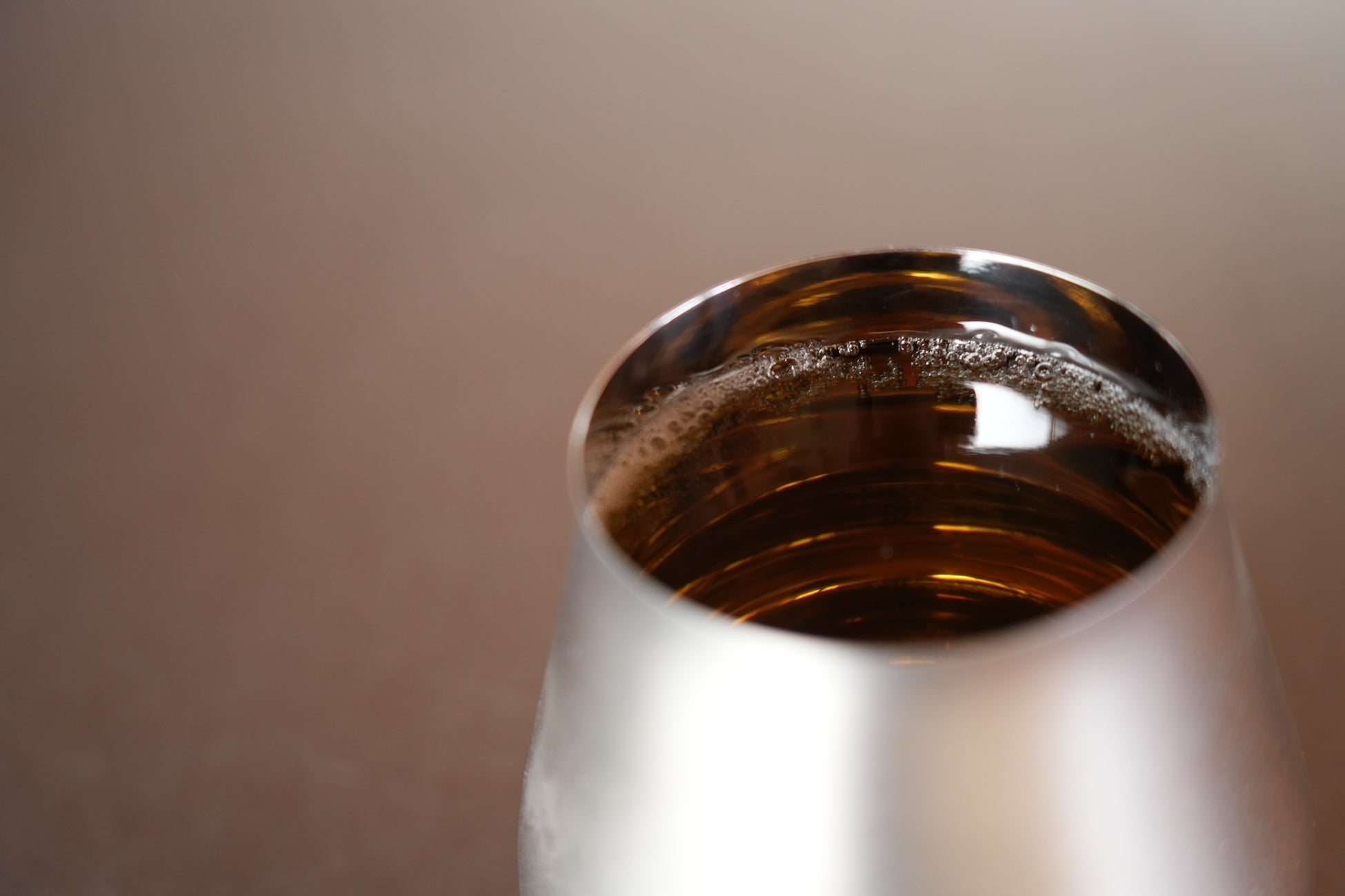 「一番に、内面が滑らかな鏡面仕上げになっているのがとても良いと感じました。炭酸は、ちょっとした衝撃でそこからどんどん抜けていきます。氷もその一つの要因です。唇に当てた時に液体と同じ冷たさを感じられるのも、ポジティブなポイントです。また、ウイスキーは冷たすぎると香りが閉じてしまいます。氷を入れずに作るハイボールは徐々に温度が上がっていくので、香りの変化を感じやすい。ウイスキー好きにおすすめしたいタンブラーですね。」