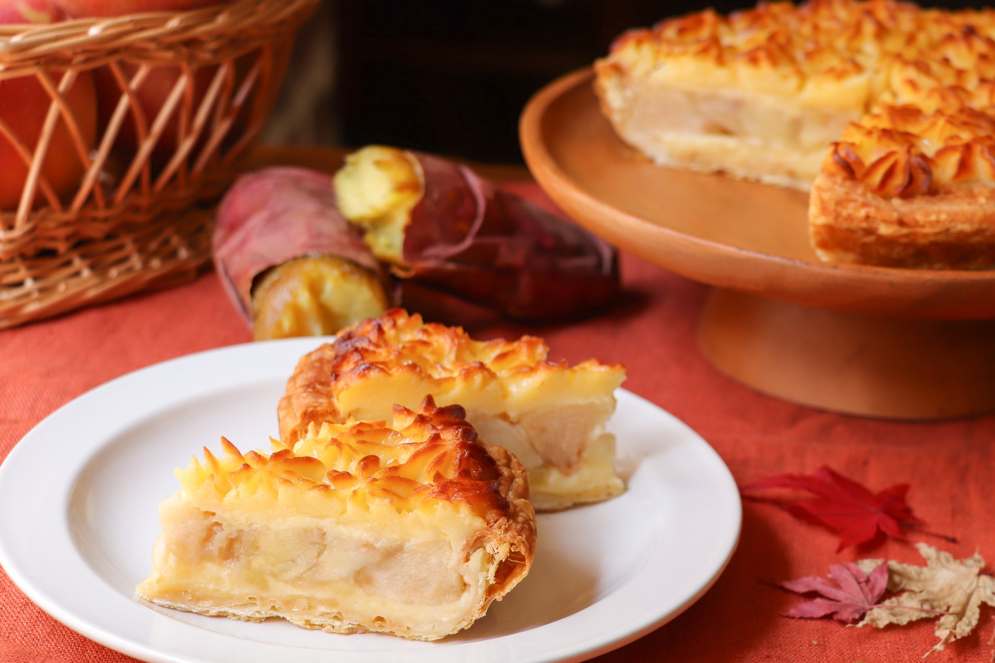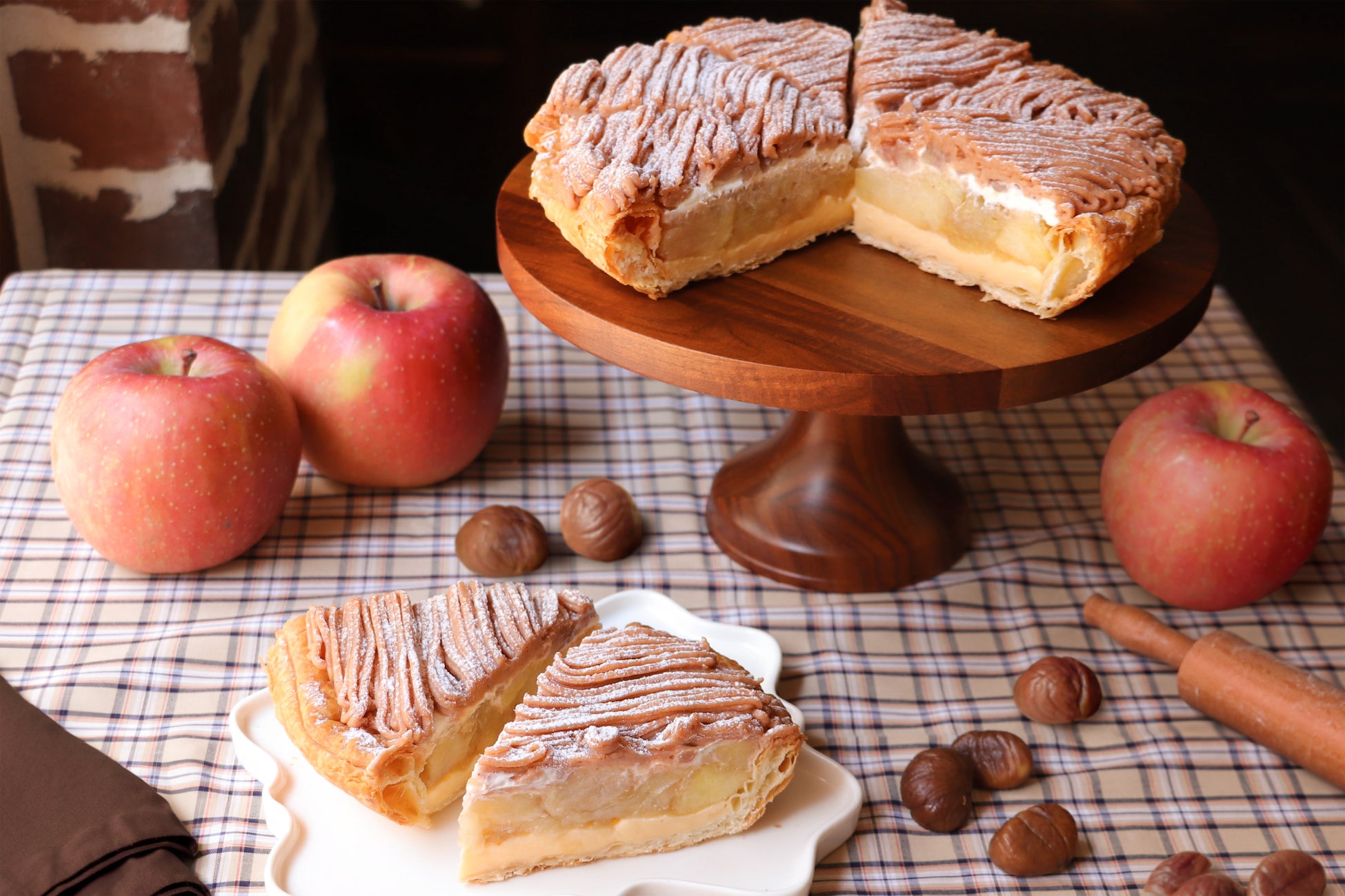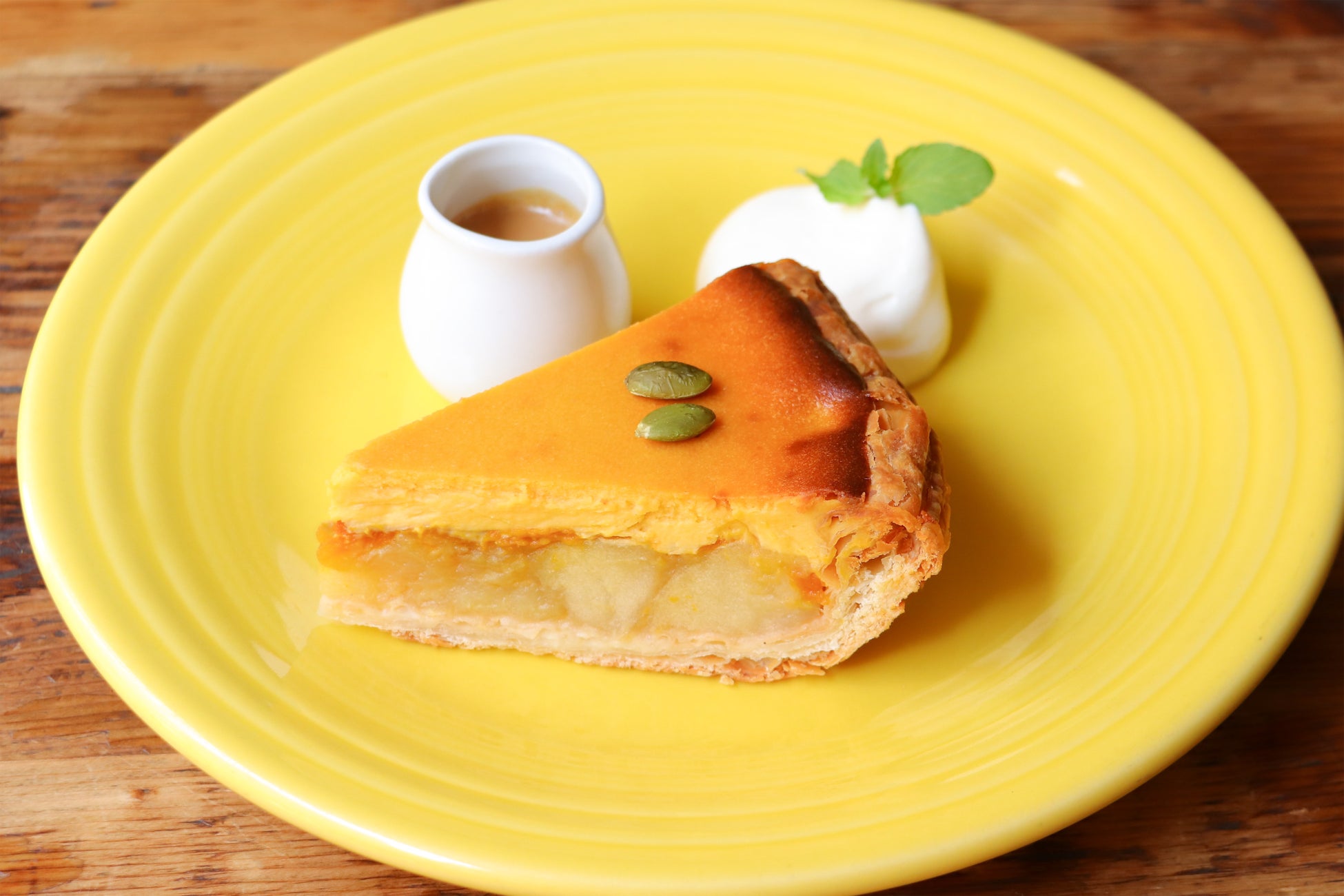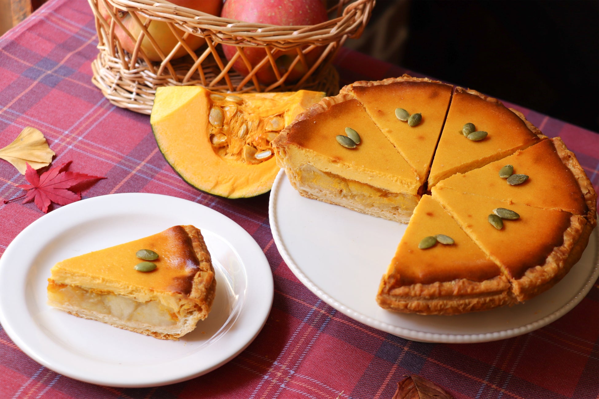 旬の北海道産えびすかぼちゃをあわせたチーズケーキ生地に、かぼちゃペーストを重ねて、りんごと一緒に焼き上げた“かぼちゃ”づくしのアップルパイ。かぼちゃ本来の濃厚な甘みにチーズケーキのコクのある風味が重なる、温めても冷やしても美味しいアップルパイです。