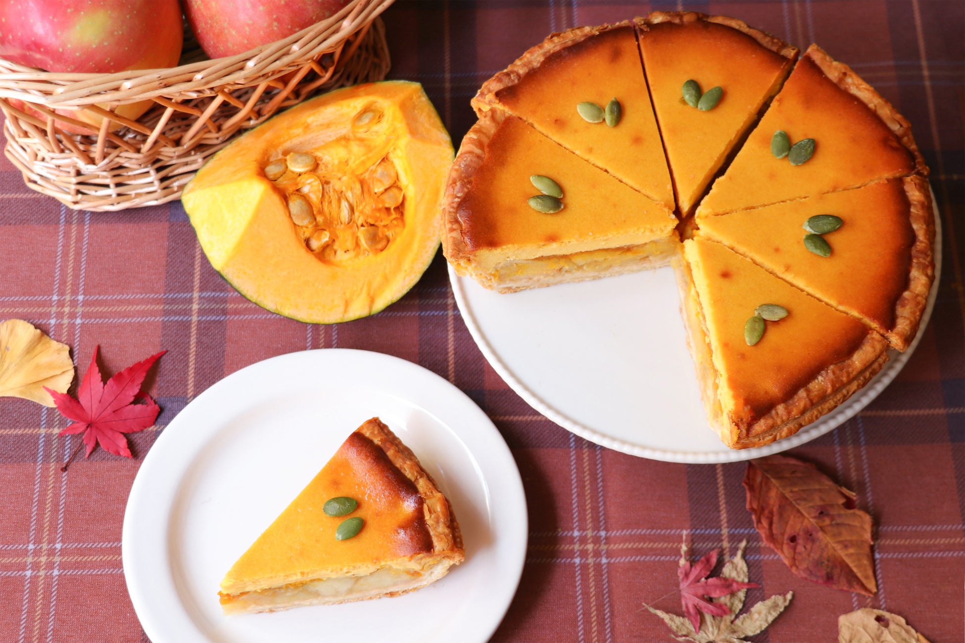 ■ 北海道産えびすかぼちゃを使用した、優しい甘さの『パンプキンチーズケーキ アップルパイ』